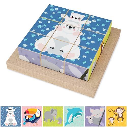 Fördert die kindliche Entwicklung: Unser Spielspaß ab 2 bis 3 Jahren dient der Förderung der Feinmotorik. Außerdem werden die Konzentration und das logische Denken des Kleinkindes spielerisch gefördert. Von Pädagogen/Innen entwickelt und perfekt auf die Bedürfnisse des Kindes abgestimmt. Mit Hilfe der 6 Bildkarten und den zauberhaften Motiven mit unterschiedlichen Hintergrundfarben ist das Kind mit unserem pädagogischen Lernspielzeug weder über- noch unterfordert HOCHWERTIGES MATERIAL: Unser Holzpuzzle ist aus hochwertigem Buchenholz gefertigt. Die Farben auf Wasserbasis und die abgerundeten Kanten sorgen für sicheres Spielen. Jeder Würfel hat eine Größe von 4,5 x 4,5 x 4,5 cm Perfektes Geschenk für Mädchen und Jungen zum Geburtstag, als ideales Gastgeschenk zum Kindergeburtstag oder als hervorragendes Weihnachtsgeschenk für Kinder