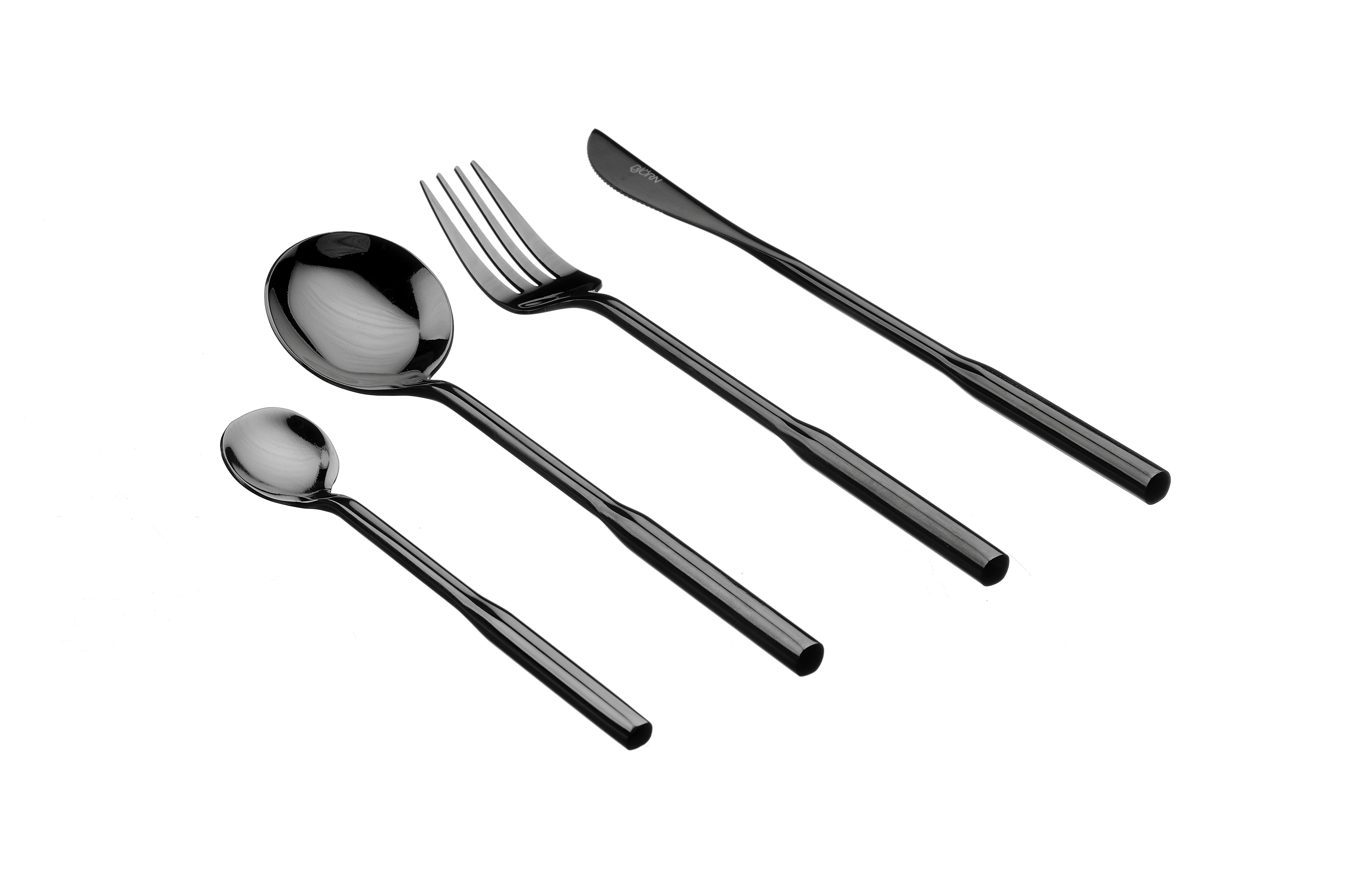 Dieses Besteck ist aus rostfreiem Stahl gefertigt, um dem täglichen Gebrauch standzuhalten. Es ist langlebig und lässt sich leicht in der Spülmaschine reinigen. In seiner schwarzen Version mit glänzender Oberfläche wird dieses Modell mit seinem schicken und strahlenden Spiegeleffekt Deinen Tisch erhellen und Deine Gäste in Erstaunen versetzen.