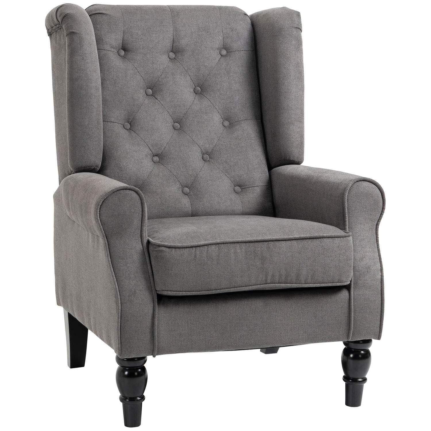 Northio Einzelsessel Relaxsessel Ohrensessel Mit Tufting, Holzfüße, Polyester, Dunkelgrau, 74X86X102Cm