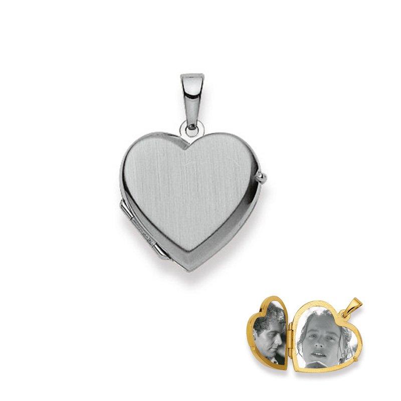 MUAU Schmuck Anhänger Medaillon Herz Weissgold 750, 22x17mm