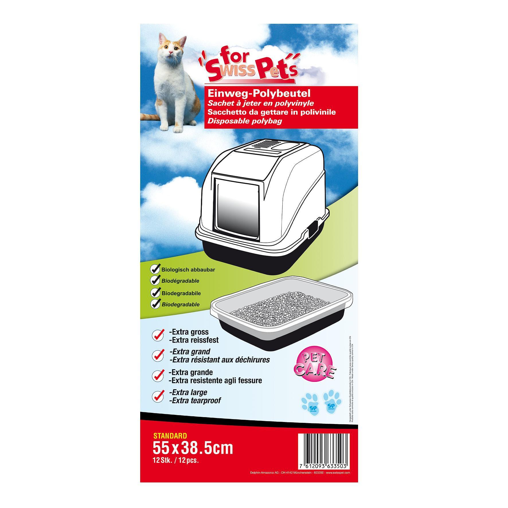 swisspet Catsy Einweg-Polybeutel Katzenkistenbeutel. Extra große, hochreißfeste Polyesterbeutel für alle gängigen Katzentoiletten. Polybeutel halten die Toilette sauber und erleichtern das Wechseln des Katzensands, da Sie ihn gleichzeitig mit dem Beutel entfernen können. 12 Stück pro Packung. Maße: Standard: 55x38,5cm XL: 70x40cm