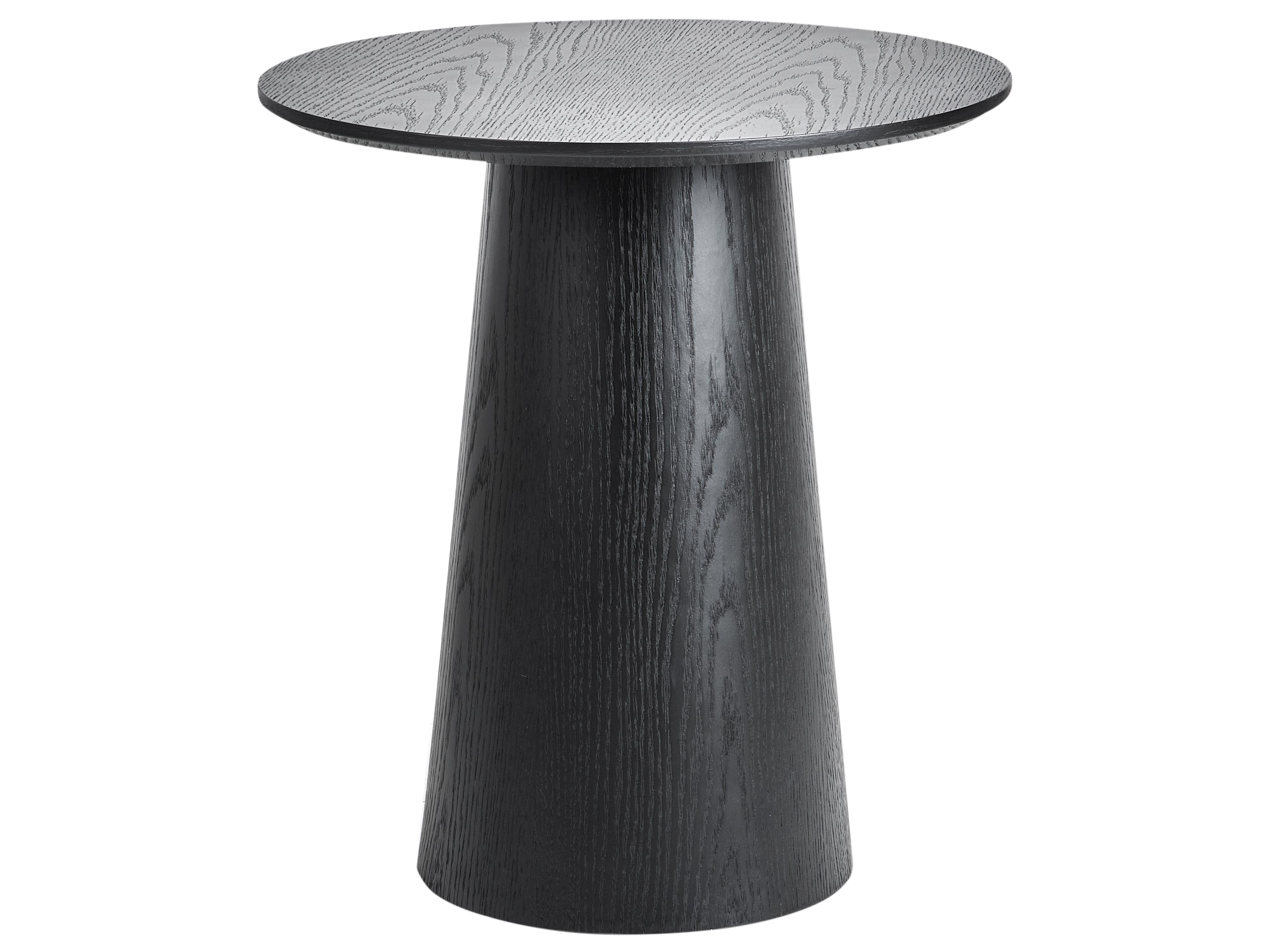 Beistelltisch im modernen Stil. Dieser runde Beistelltisch verleiht Ihrem Wohnraum ausdrucksstarke Eleganz – mit einem markanten konischen Fuss und einer strukturierten Holzoptik. Gefertigt aus robustem MDF in tiefem Schwarz, verbindet er eine skulpturale Form mit praktischer Alltagstauglichkeit. Ideal für moderne und minimalistische Einrichtungsstile – ein echter, funktionaler Eyecatcher.