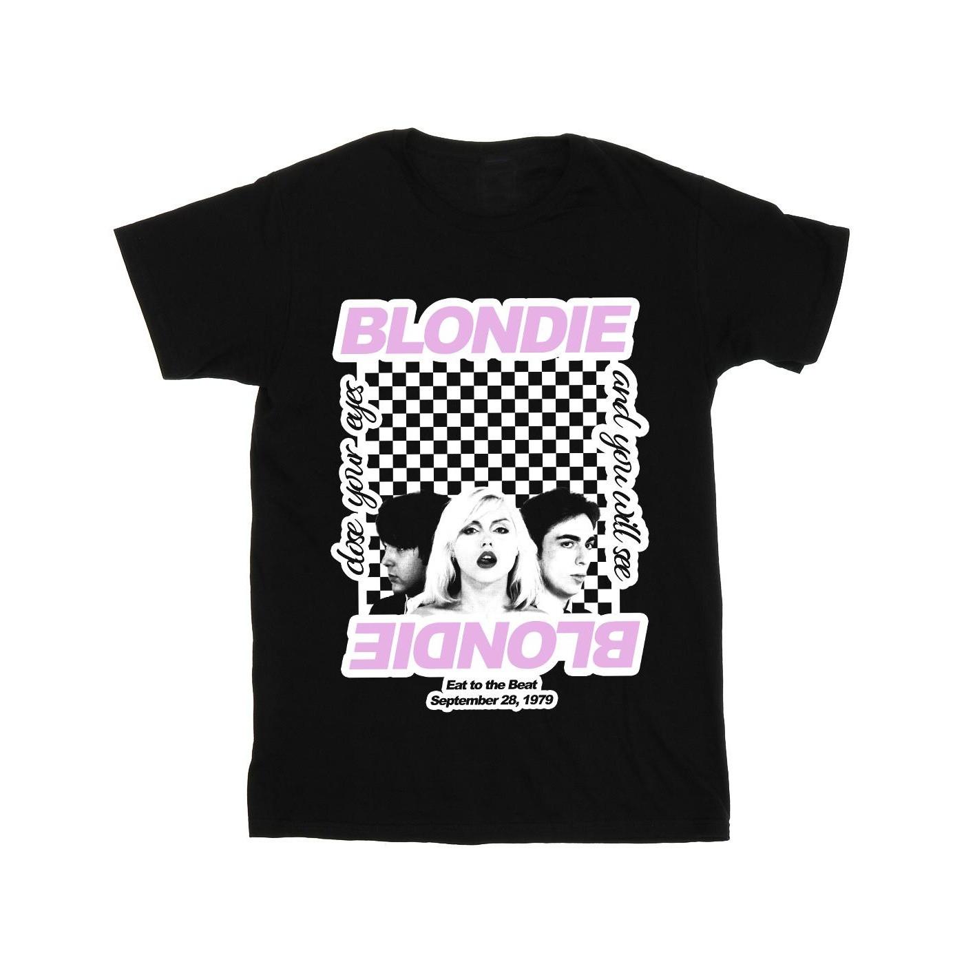 Dieses Blondie T-Shirt zeigt einen Grafikdruck, der vom ikonischen "Eat to the Beat"-Album inspiriert ist. Das Design umfasst ein Schachbrettmuster und Bilder der Bandmitglieder, was es zu einer stilvollen Wahl für Fans macht.