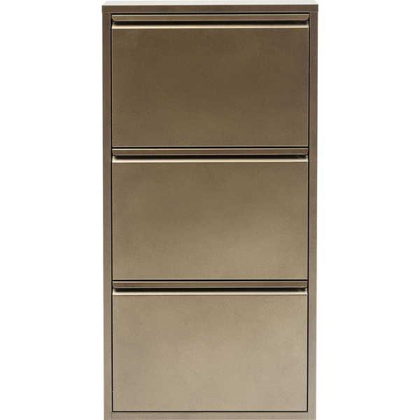 Schuhe vor der Tür? Oder auf der Treppe verteilt? Nö, lieber nicht. Der Schuhschrank setzt dem Chaos ein Ende. Drei geräumige Kippfächer bieten jede Menge Stauraum und Schutz vor Staub. Und dank der Kippschubladen lässt sich leicht Ordnung schaffen. Mit der pulverbeschichteten Oberfläche in einem edlen Bronze-Ton sorgt Caruso für Stil im Flur oder Ankleidebereich.