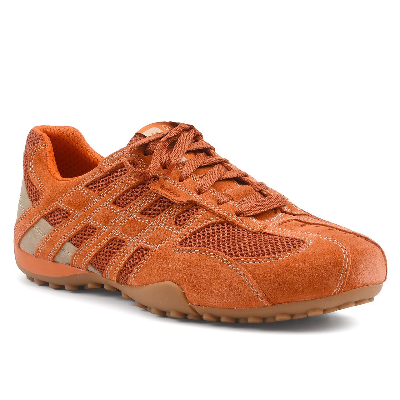 Die Snake Schuhe sind für den täglichen Gebrauch konzipiert. Diese Schnürschuhe im klassischen und vielseitigen Stil eignen sich perfekt für Ausflüge oder das Büro. Das Obermaterial ist aus Textil-Veloursleder, während das Futter aus Textil besteht. Die Innensohle ist aus herausnehmbarem Leder gefertigt und bietet eine optimale Passform und Komfort. Die Laufsohle ist aus Gummi gefertigt und garantiert eine außergewöhnliche Haltbarkeit. Details sind ein Textil-Sneaker-Design und braune Leder-Schnürsenkel. Die dominierende Farbe ist Orange, mit weißen Akzenten auf den Nähten. Diese Sneakers bieten dank der atmungsaktiven Sohle, die die Marke erfolgreich gemacht hat, eine perfekte Balance zwischen Komfort, Passform und Langlebigkeit.