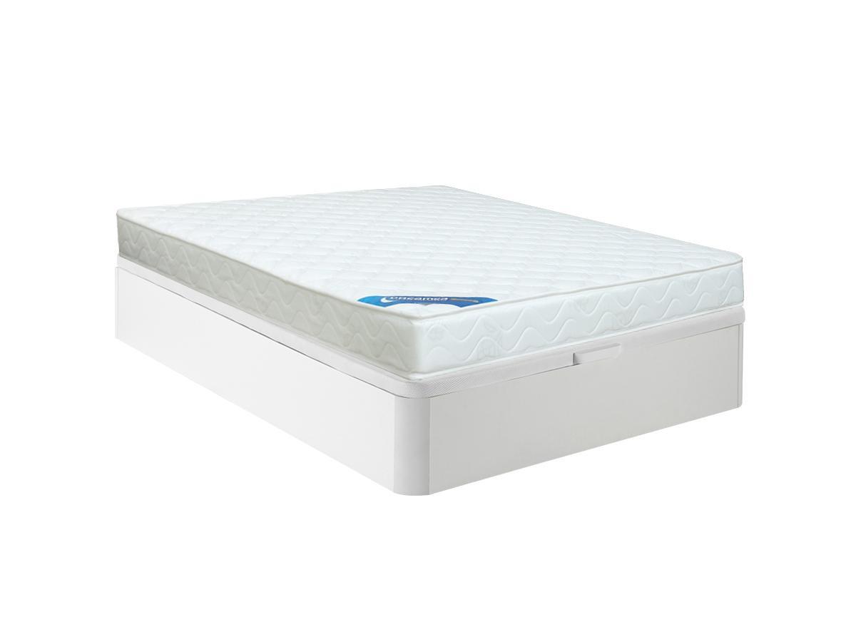 DREAMEA Set aus Bettgestell mit Bettkasten + Schaumstoffmatratze - 140 x 190 cm - Stärke 15 cm - Weiß - ZEUS von DREAMEA