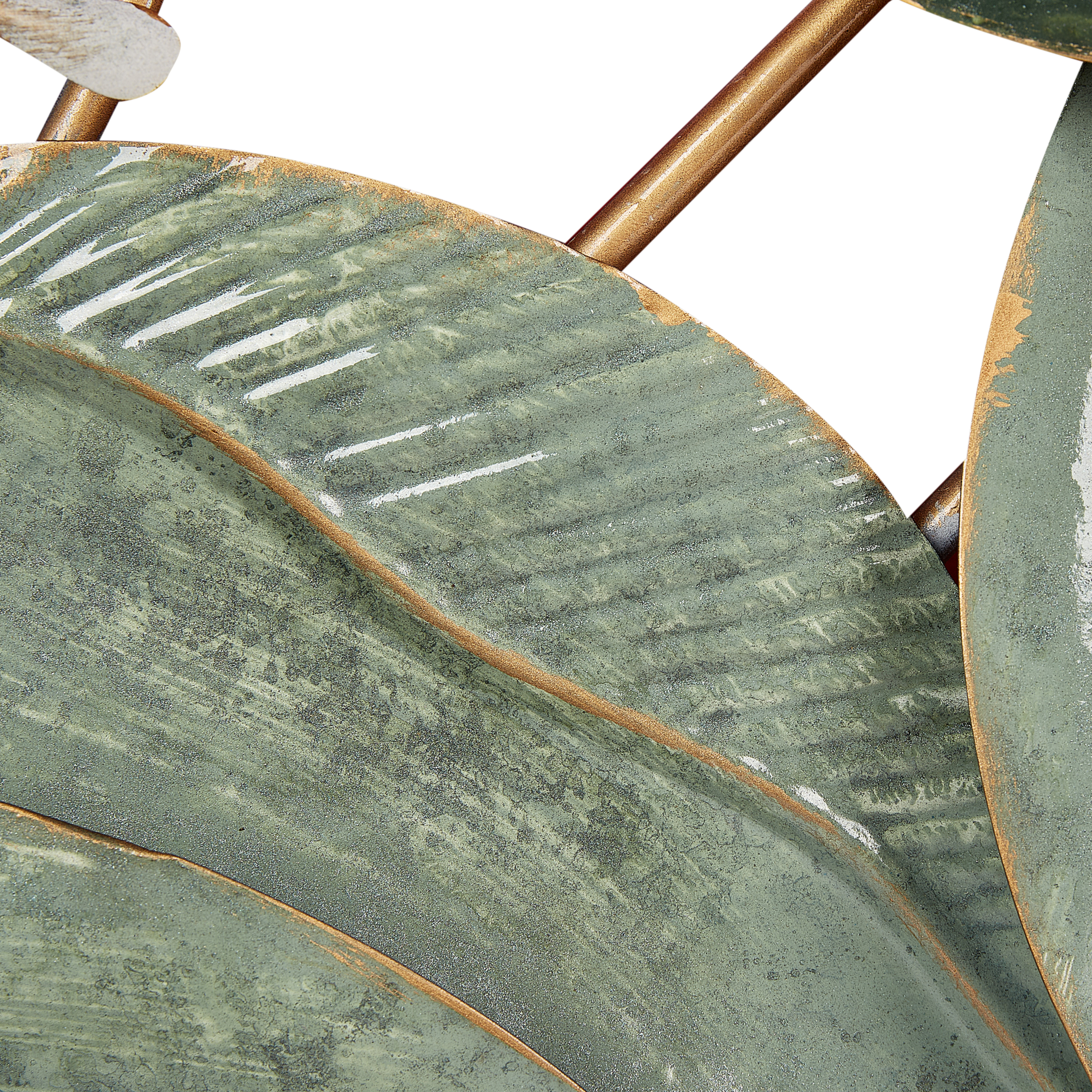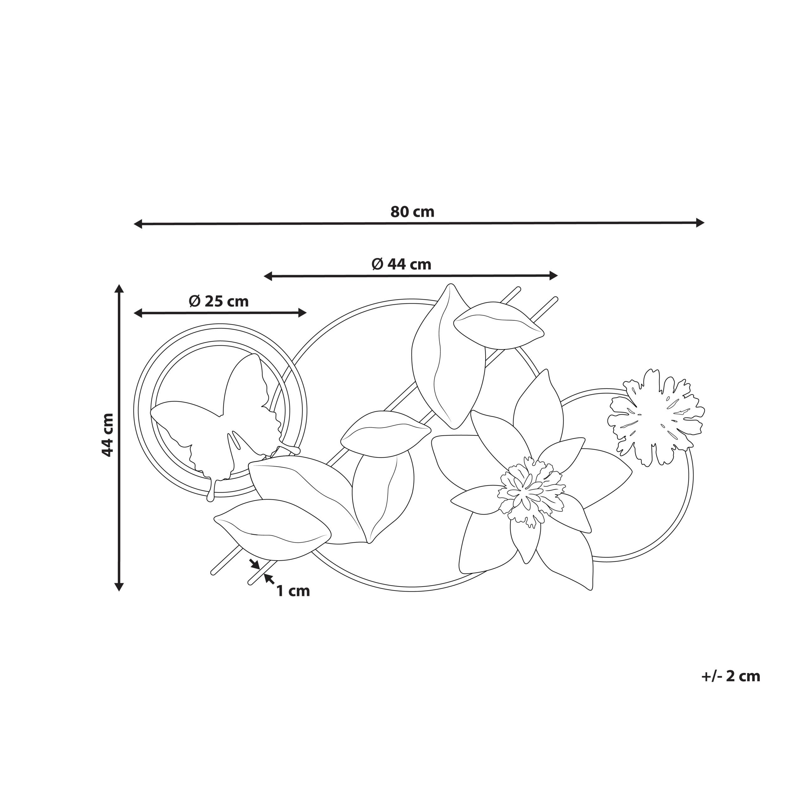Moderne, handgemachte Metall-Wanddeko mit Schmetterling, Blättern und Blumen. Mit diesem blumigen 3D-Wandobjekt bringen Sie jede Wohnwand raffiniert zum Aufblühen. Es ist komplett aus langlebigem, robustem Eisen gefertigt und mit einer Nitrolackierung vollendet, die die Kratzresistenz der Oberflächen steigert. Dabei ist die Wanddeko handbemalt, so fallen die Farbschattierungen und goldenen Details bei jedem Modell etwas anders aus. Dank solch einer einzigartigen Fertigung können Sie Ihre Wände nicht nur effektvoll gestalten, sondern auch Ihre Gäste verzaubern. Der Wandschmuck kann mithilfe der integrierten Haken aufgehängt werden.