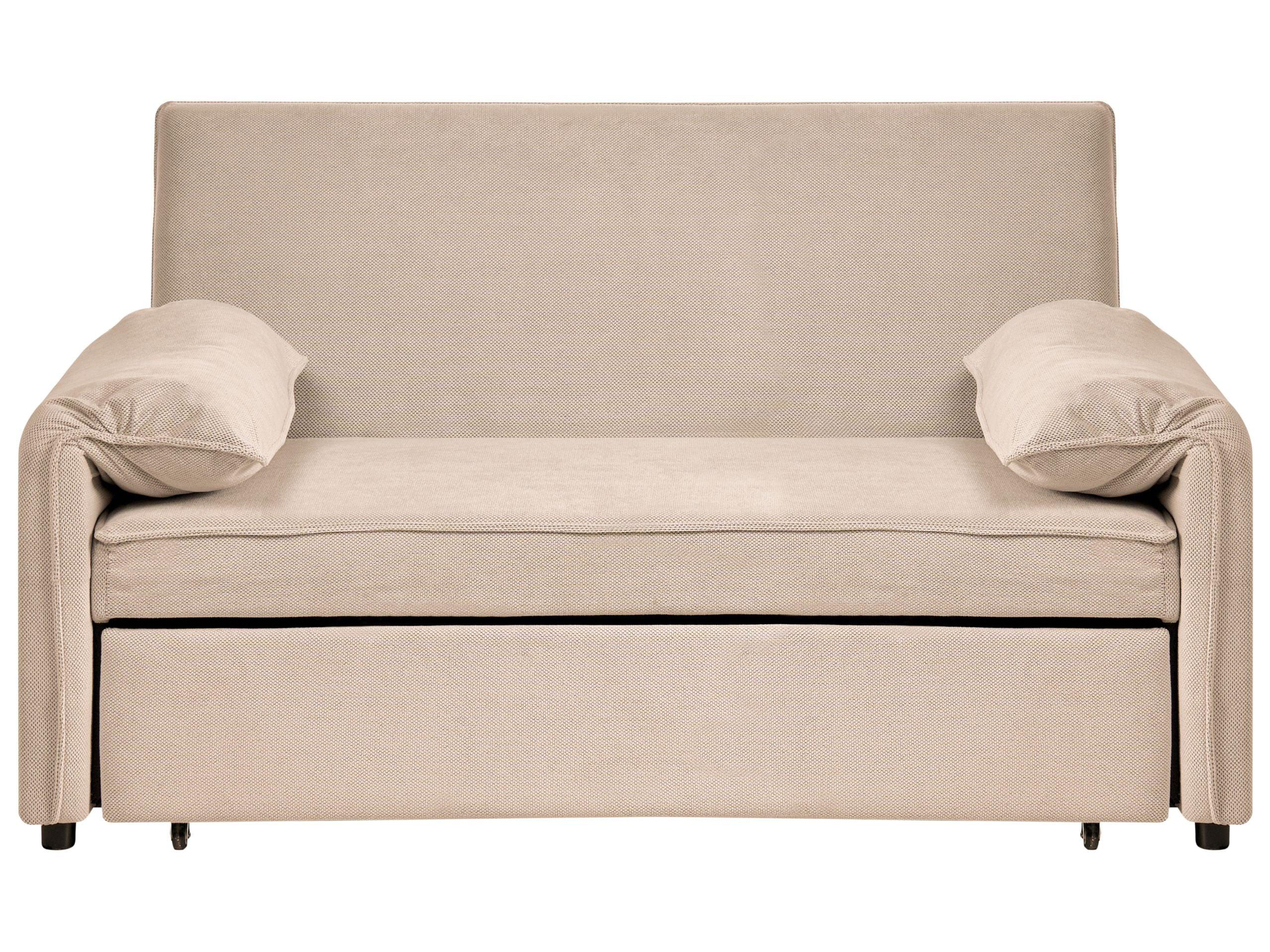 2-Sitzer Sofa mit ausziehbarem Bett. Dieses Schlafsofa verbindet Stil und Funktionalität. Mit seinem klaren Design passt es perfekt in moderne Innenräume. Die Rückenlehne lässt sich in drei Positionen verstellen und bietet so individuellen Komfort. Die Sitzfläche lässt sich leicht zu einem geräumigen Bett für Gäste ausklappen. Dank der stilvollen, gepolsterten Armlehnen und des strapazierfähigen, wasserabweisenden Stoffs ist es eine elegante und funktionale Ergänzung für jedes Wohnzimmer.