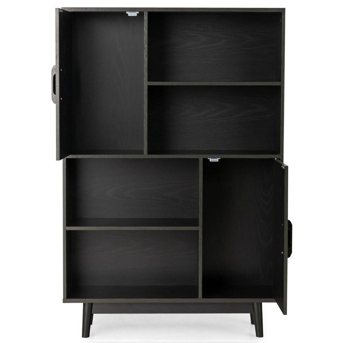 Northix Hölzernes Bücherregal 4-stöckiges Bücherregal mit 2 Türen Aufbewahrungsschrank Schwarz