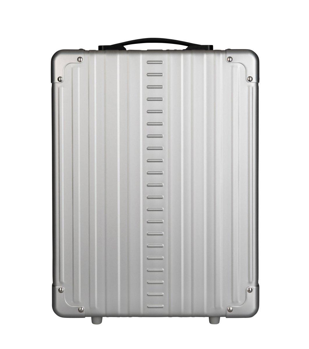 Dieser Hybrid-Rucksack verfügt über eine Aussenschale aus Vollaluminium, die für absolute Formfestigkeit sorgt. Er lässt sich um 45 oder 180 Grad aufklappen, um einen einfachen Zugriff zu ermöglichen. Die intelligente Inneneinrichtung umfasst ein Notebookfach, ein kleines Reissverschlussfach, Stiftehalter und ein Visitenkartenfach. Ein herausnehmbares Dokumentenfach ist ebenfalls im Korpus integriert.