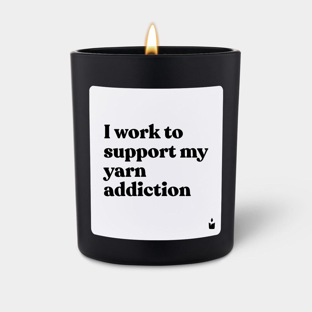 CandleHand Duftkerze Woody I work to support my yarn addiction