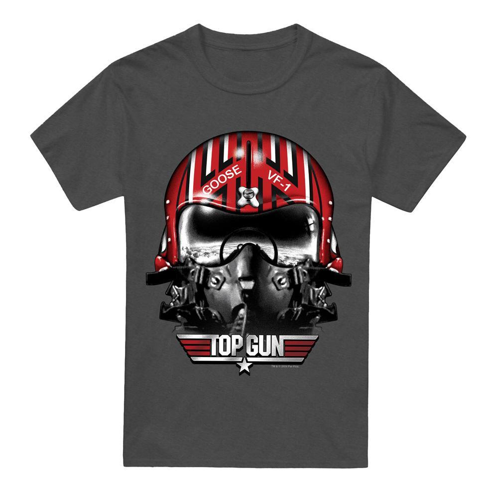 Dieses T-Shirt zeigt einen auffälligen Grafikdruck, inspiriert von der ikonischen Figur Goose aus Top Gun. Das Design präsentiert einen Pilotenhelm mit den Markierungen "GOOSE" und "VF-1" vor einem Hintergrund, der die aufregende Welt der Marinefliegerei heraufbeschwört. Unter dem Helm ist das klassische "TOP GUN"-Logo prominent platziert, was dieses T-Shirt zu einem Muss für Fans des legendären Films macht.