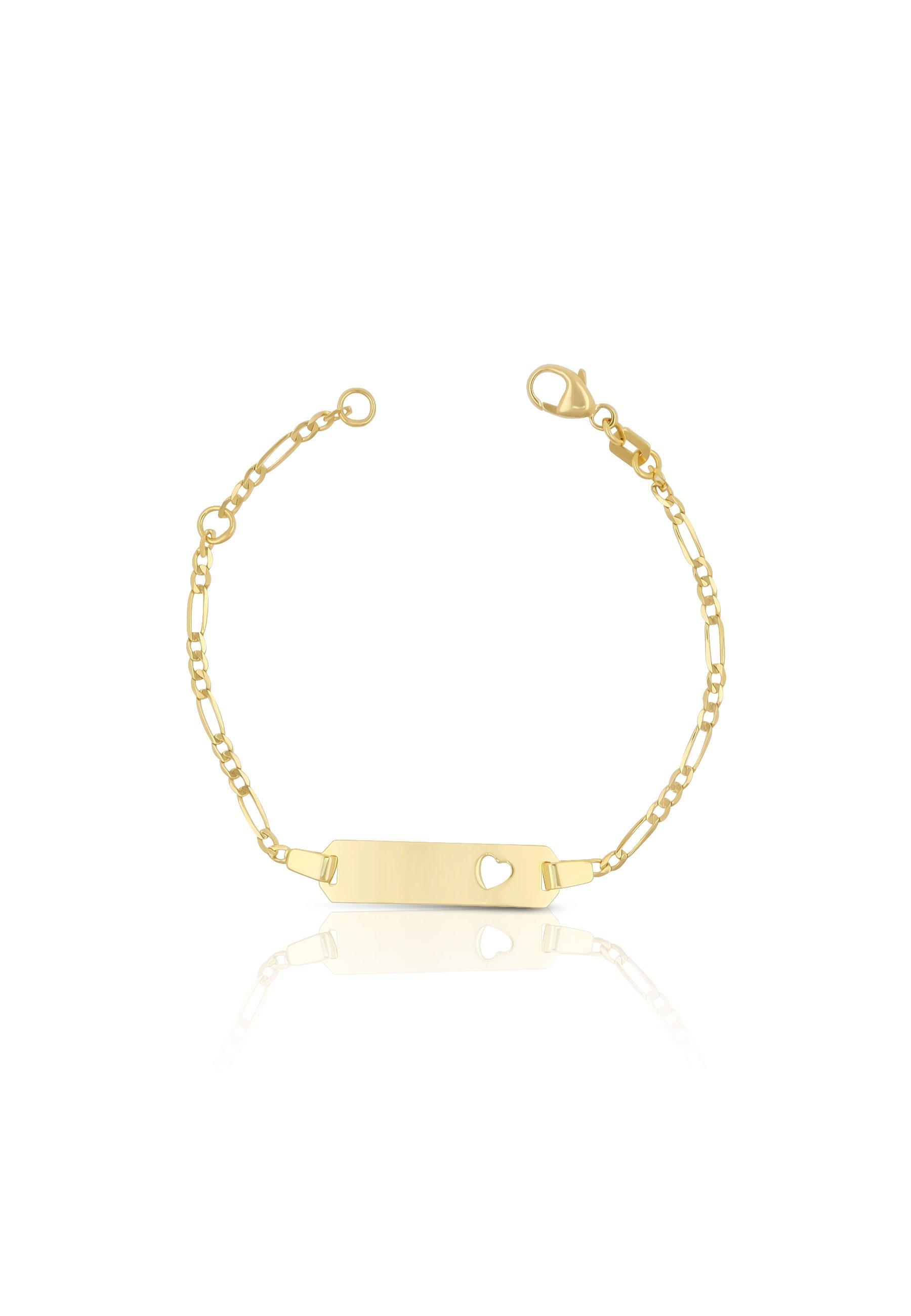MUAU Schmuck, Bébé Bracelet Herz Figaro Gelbgold 750, 14cm Gravurplatte 2.1cm