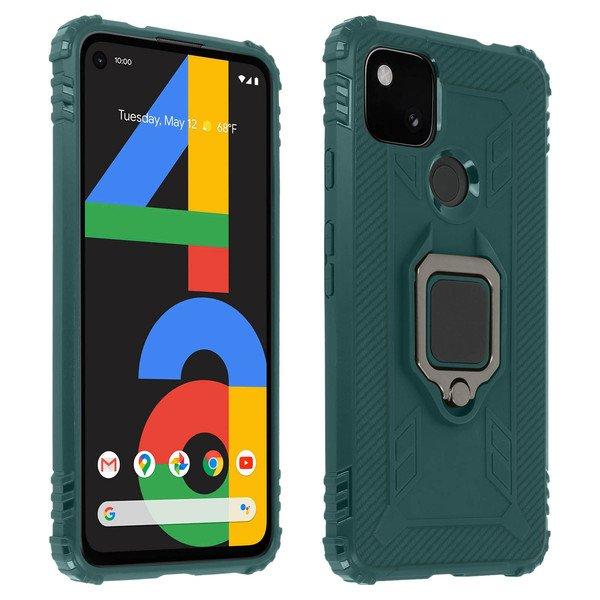 Stoßfeste Handyhülle für Google Pixel 4A. Handyhülle aus Silikon mit schockabsorbierendem Bumper. Ring-Halterung kann als Ständer und mit magnetischen Autohalterungen benutzt werden. Anschlüsse zugänglich.