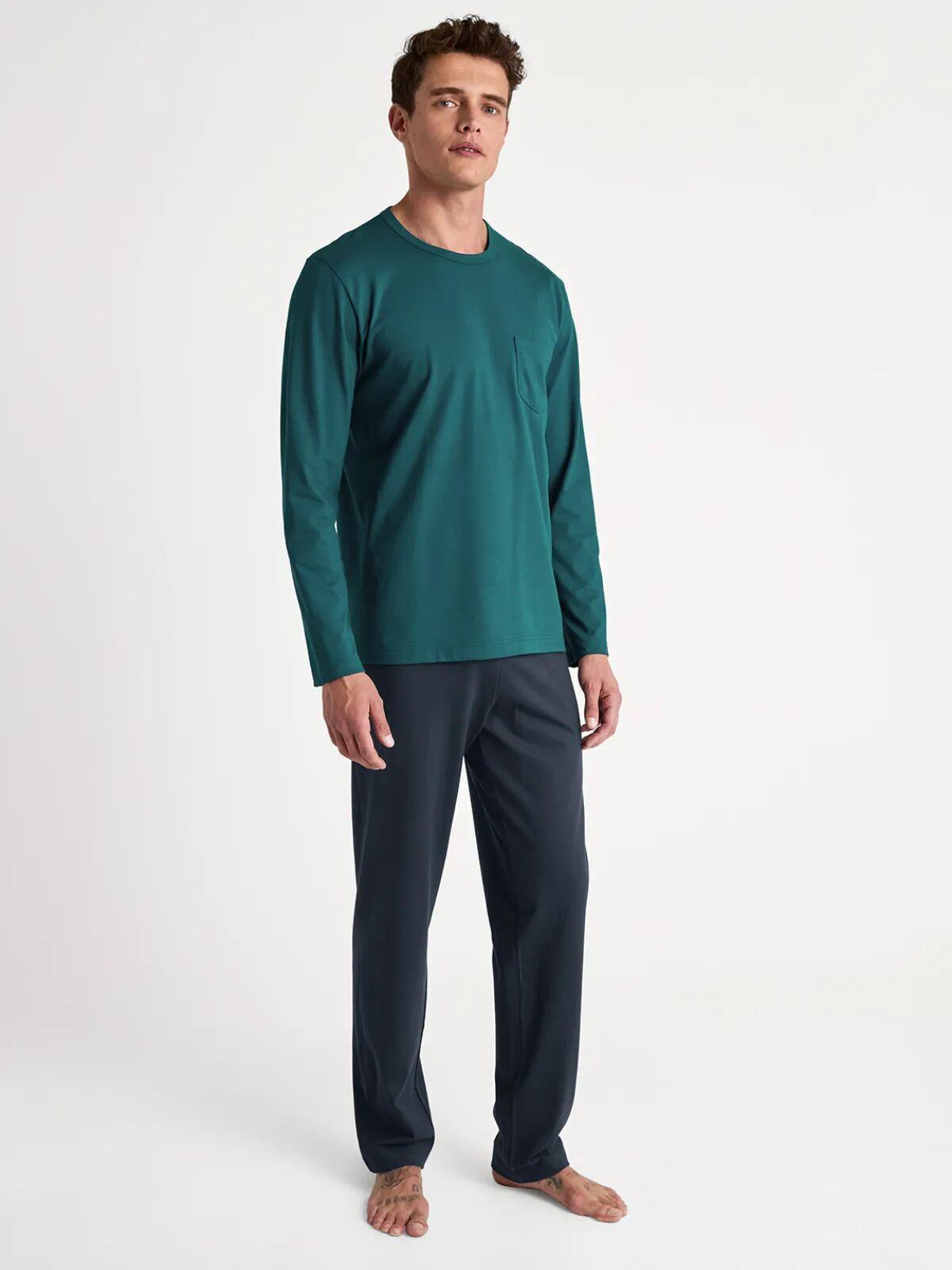 Der Relax Essentials lange Pyjama bietet Komfort und Stil für entspannte Stunden zu Hause. Dieses zweiteilige Set besteht aus einem Langarmshirt und einer passenden Hose, die für eine bequeme Passform konzipiert sind.