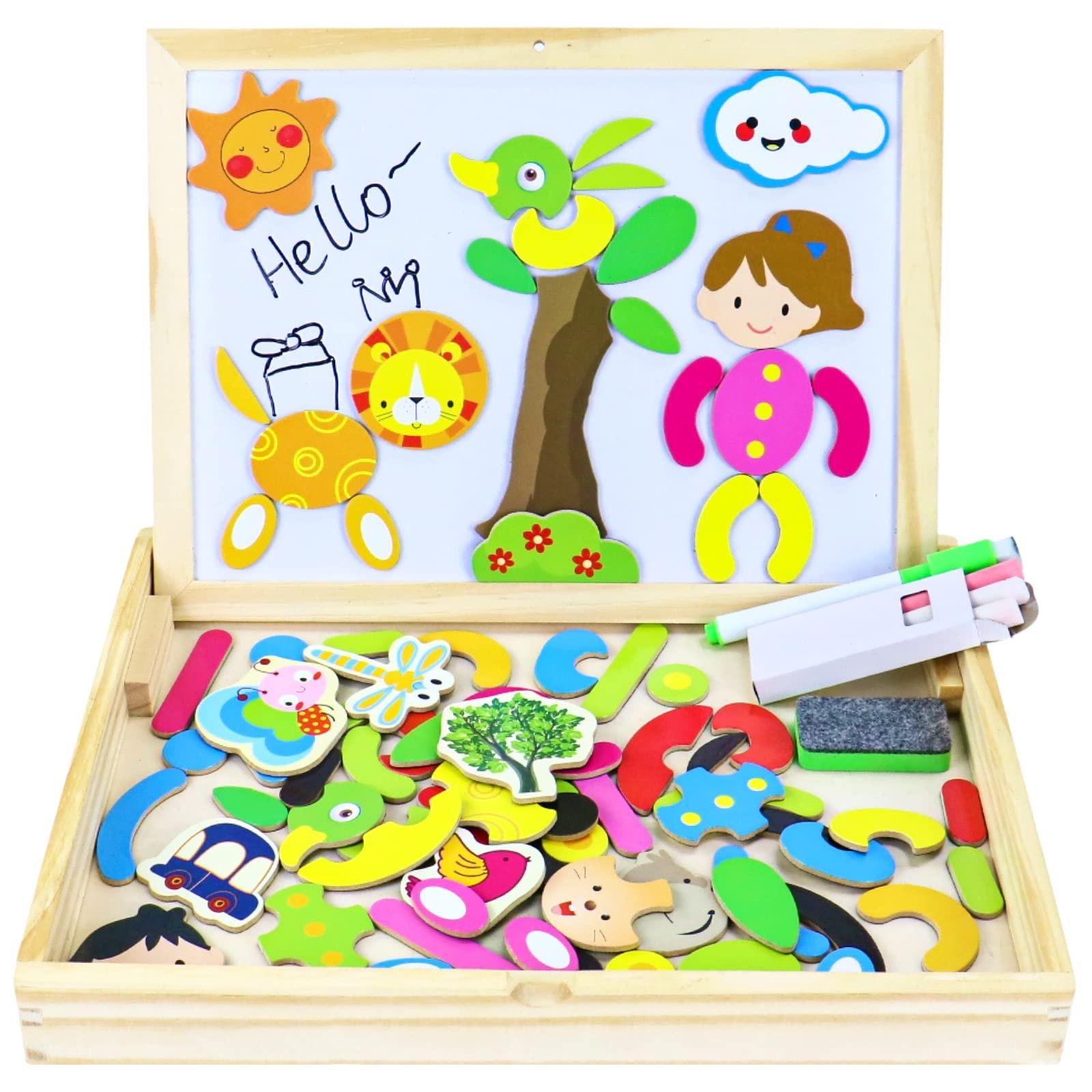 Activity-board Magnettafel Kinderspielzeug ,Magnetisches Holzpuzzle Puzzle aus 3 mit doppelseitiger Tafel Magnetspiel Holzspielzeug