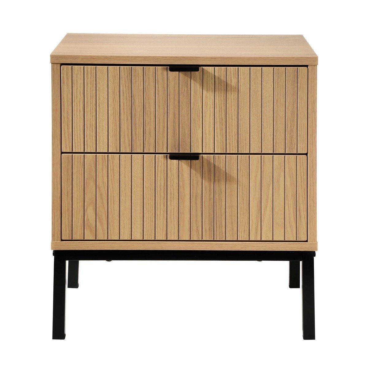 Calicosy, Nachttisch 2 Schubladen Effekt Holz mit Rillen - H51cm