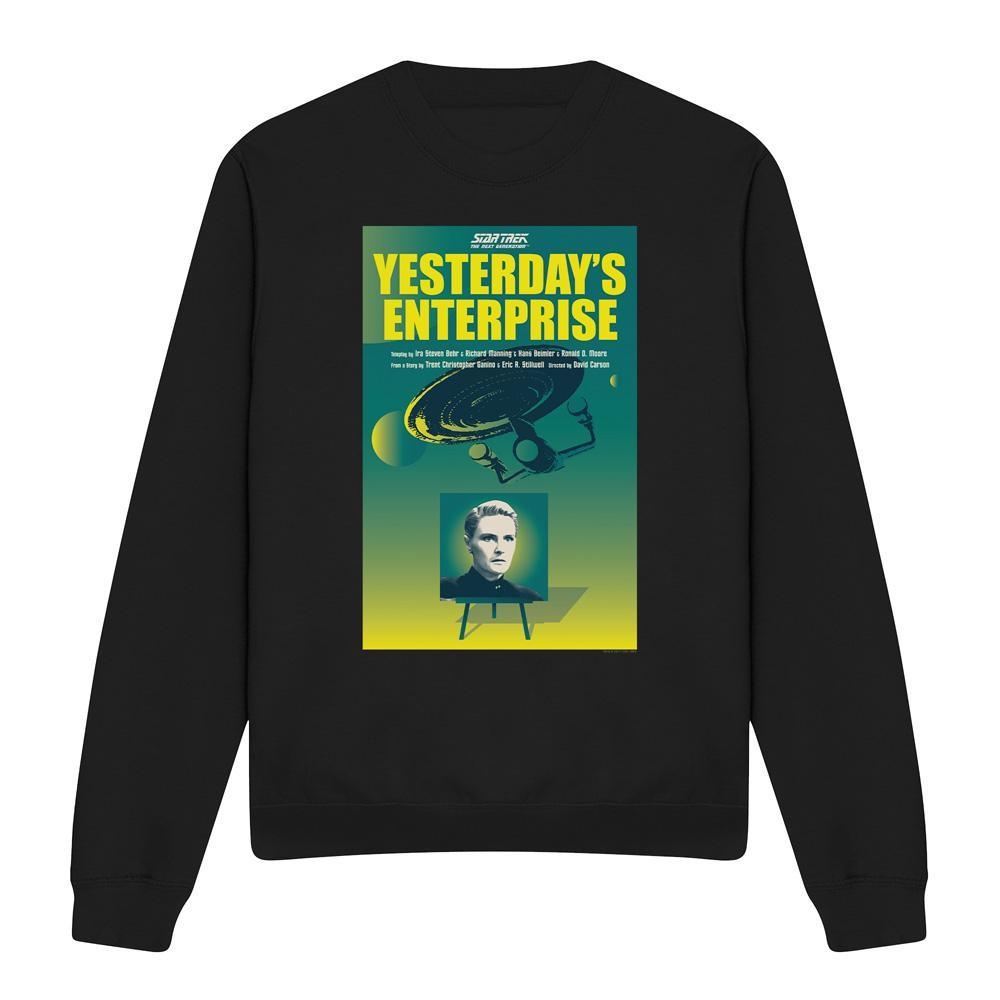 Dieses Sweatshirt zeigt einen Grafikdruck von Star Trek: The Next Generation, speziell für Staffel 3 Episode 15 mit dem Titel "Yesterday's Enterprise". Das Design präsentiert Schlüsselelemente der Episode und macht es zu einem unverwechselbaren Stück für Fans.