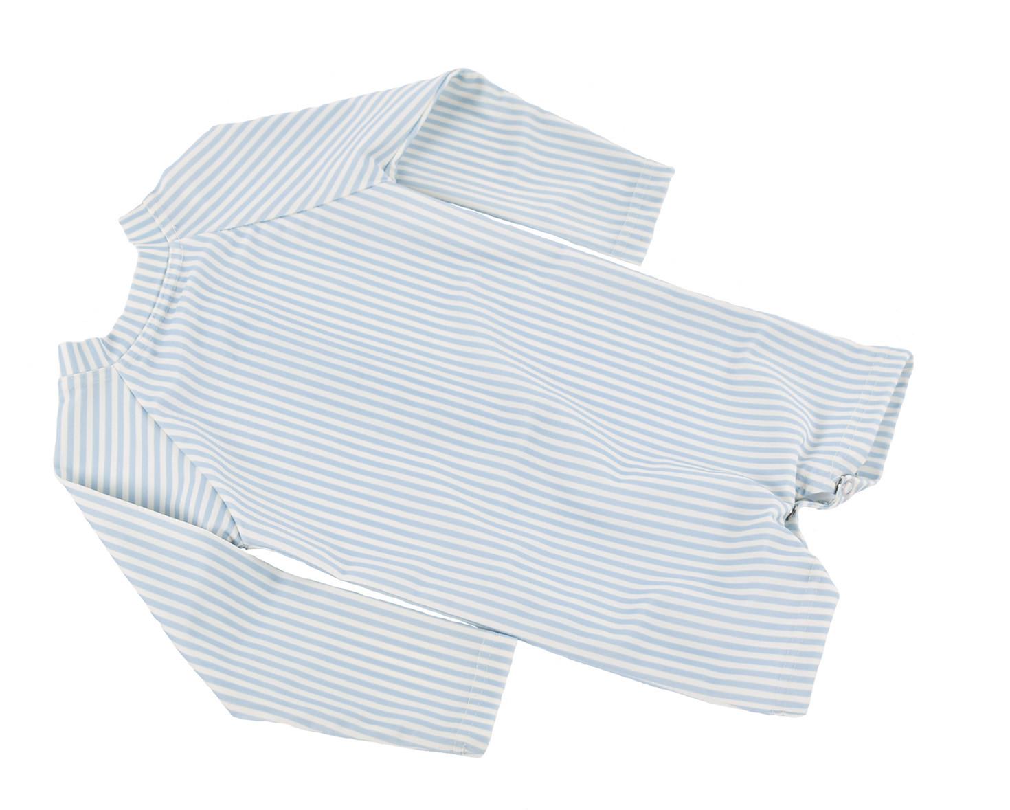 Dieser UV-Schwimmanzug für Jungen ist aus UPF50+-Gewebe gefertigt und bietet Schutz vor den UV-Strahlen der Sonne. Das Design bietet ein klassisches Streifenmuster, das für einen stilvollen Look bei Badebekleidung sorgt. Der dehnbare Stoff ermöglicht viel Bewegung, Spiel und Schwimmen. Ein Reissverschluss vorne erleichtert das An- und Ausziehen, und Druckknöpfe unten bieten Platz für Schwimmwindeln.