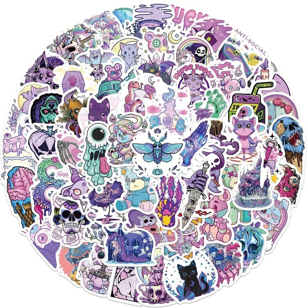 Diese glänzenden Aufkleber haben farbenfrohe Motive, die von Halloween inspiriert sind. Darunter finden Sie unter anderem Totenköpfe, gruselige Teddybären und Augen, alle mit Elementen in Lilatönen. Verwenden Sie die Aufkleber, um Ihren Computer, Ihr Telefon, Ihren Spiegel, Ihr Notebook oder andere optionale Gegenstände zu dekorieren. Die Aufkleber halten sowohl Sonne als auch Wasser stand, lassen sich leicht anbringen und abziehen und hinterlassen keine Spuren.
