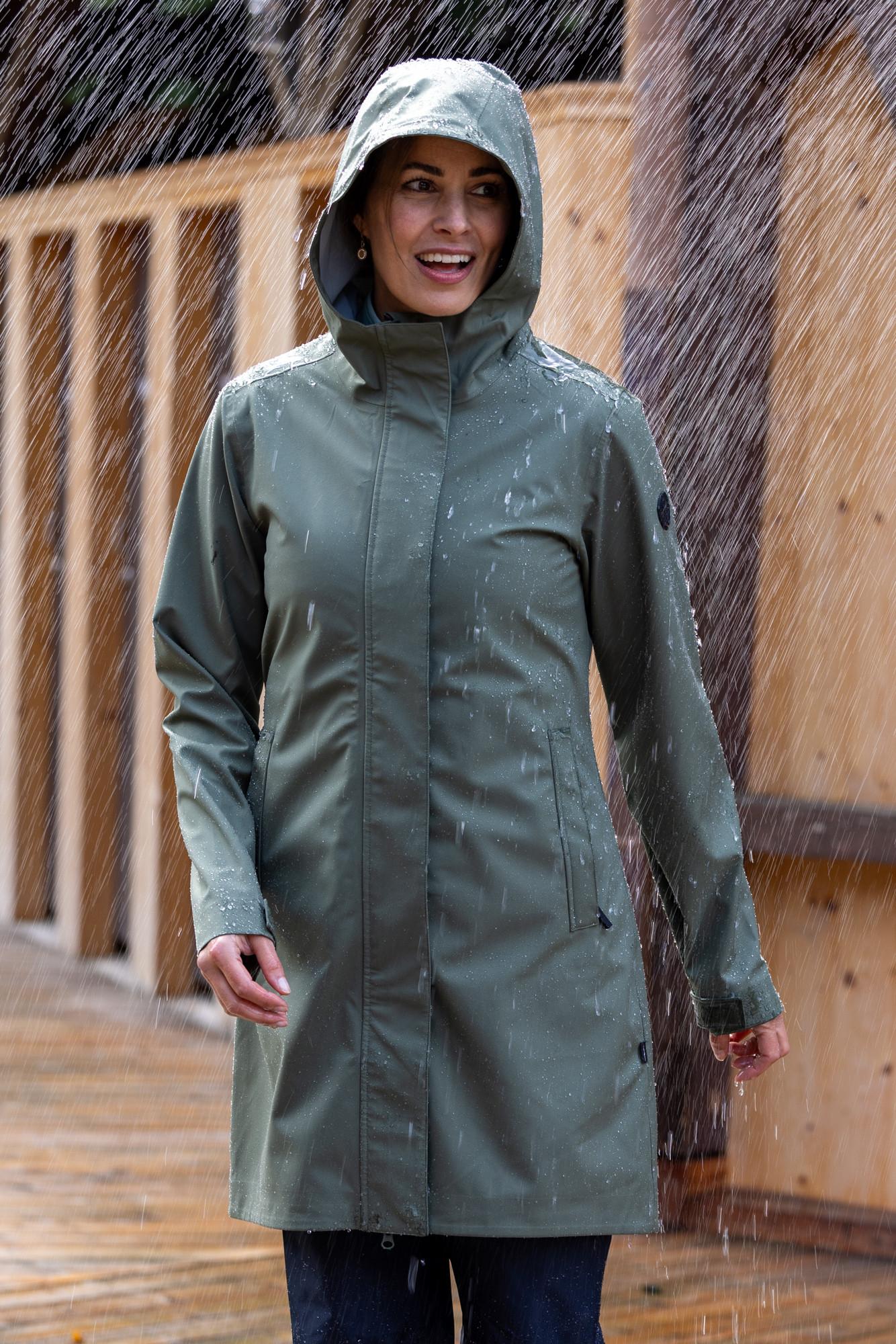 Der Giselle Regenmantel ist aus einem robusten 3-Lagen-Material gefertigt und bietet eine beeindruckende Wassersäule von 20'000 mm. Dieses Design bietet hervorragenden Schutz vor Regen und sorgt für eine schöne Passform.