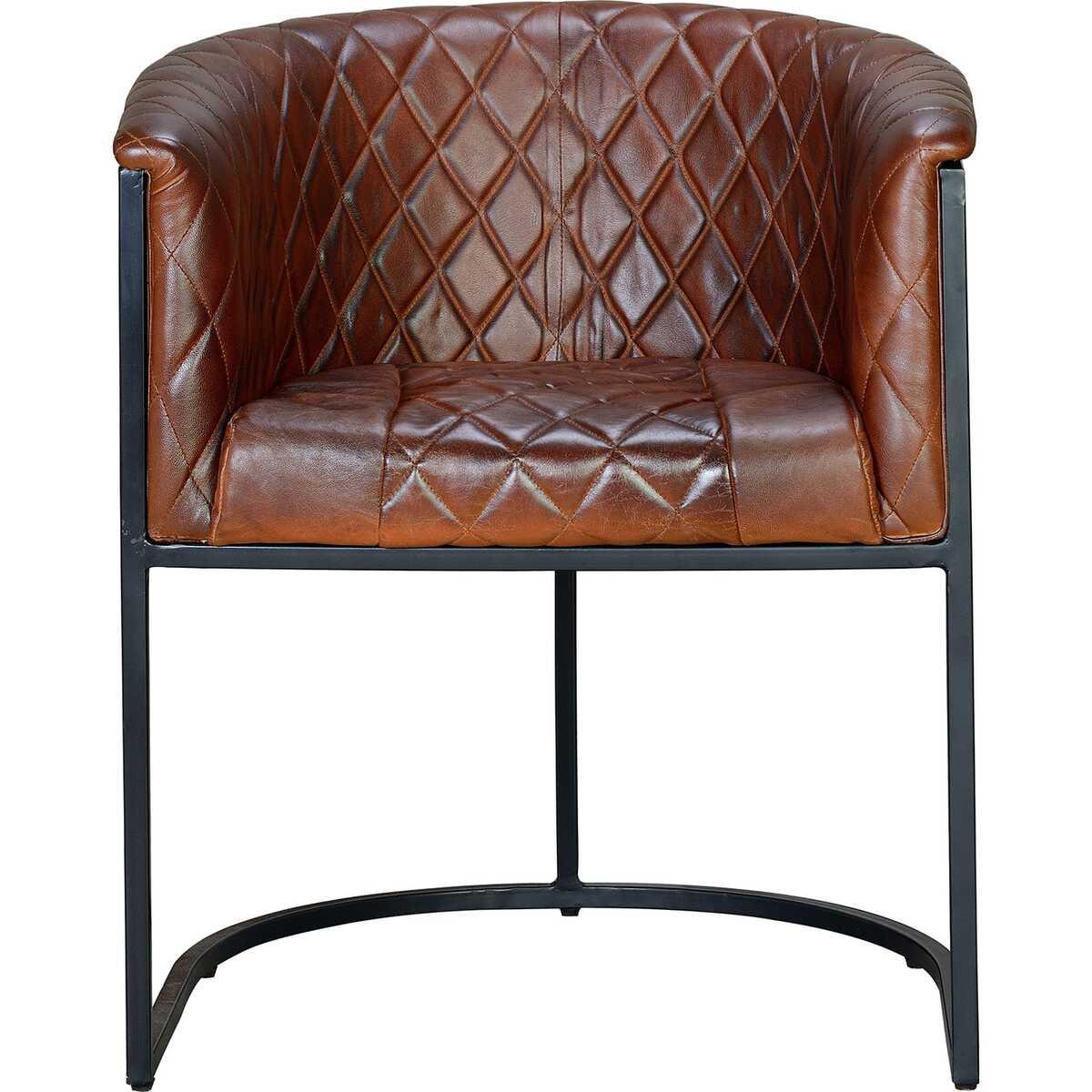 Sessel mit Bezug aus Leder und Gestell aus Metall. Sitzhöhe: 50 cm. Sitzmass: 45 cm Breite x 50 cm Tiefe. Eisengestell Dicke: 2 x 2 cm