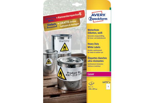 Avery-Zweckform, AVERY ZWECKFORM Wetterfeste-Etikett. 210x297mm L4775-8 weiss 8 Blatt/8 Stk.