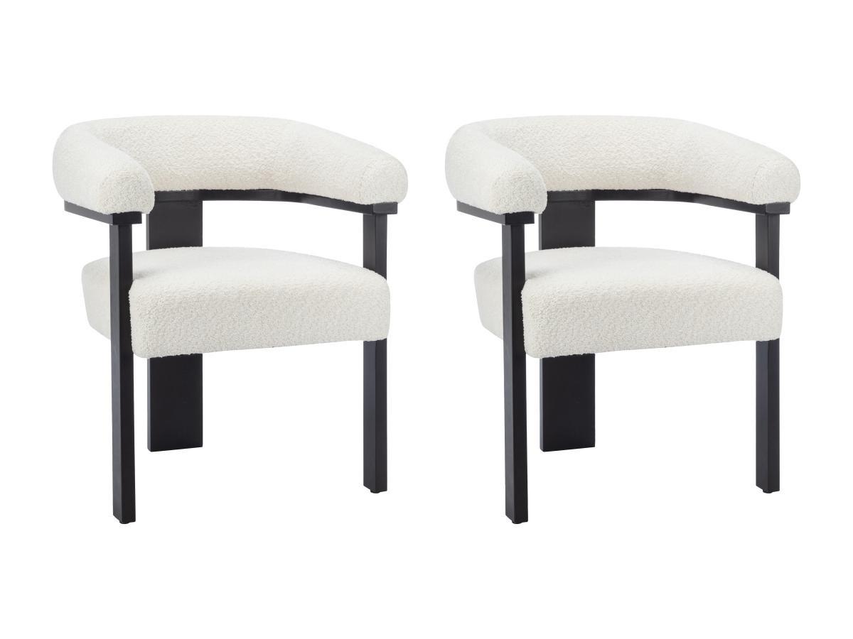 PASCAL MORABITO, Stuhl mit Armlehnen 2er-Set - Bouclé-Stoff & Kautschukholz - Weiß & Schwarz - LIVELIA