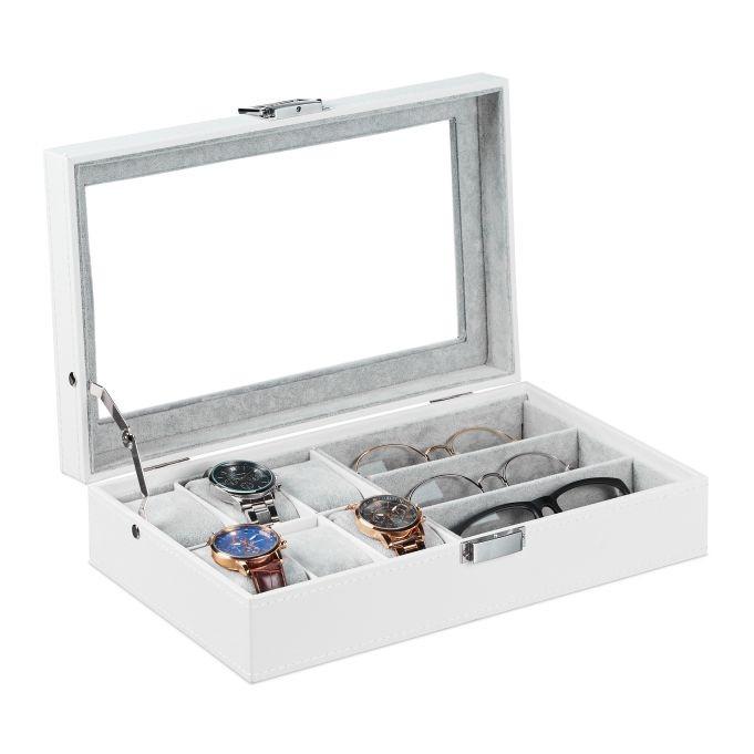 - Bewahren Sie bis zu 6 Uhren sicher auf speziellen Kissen auf.