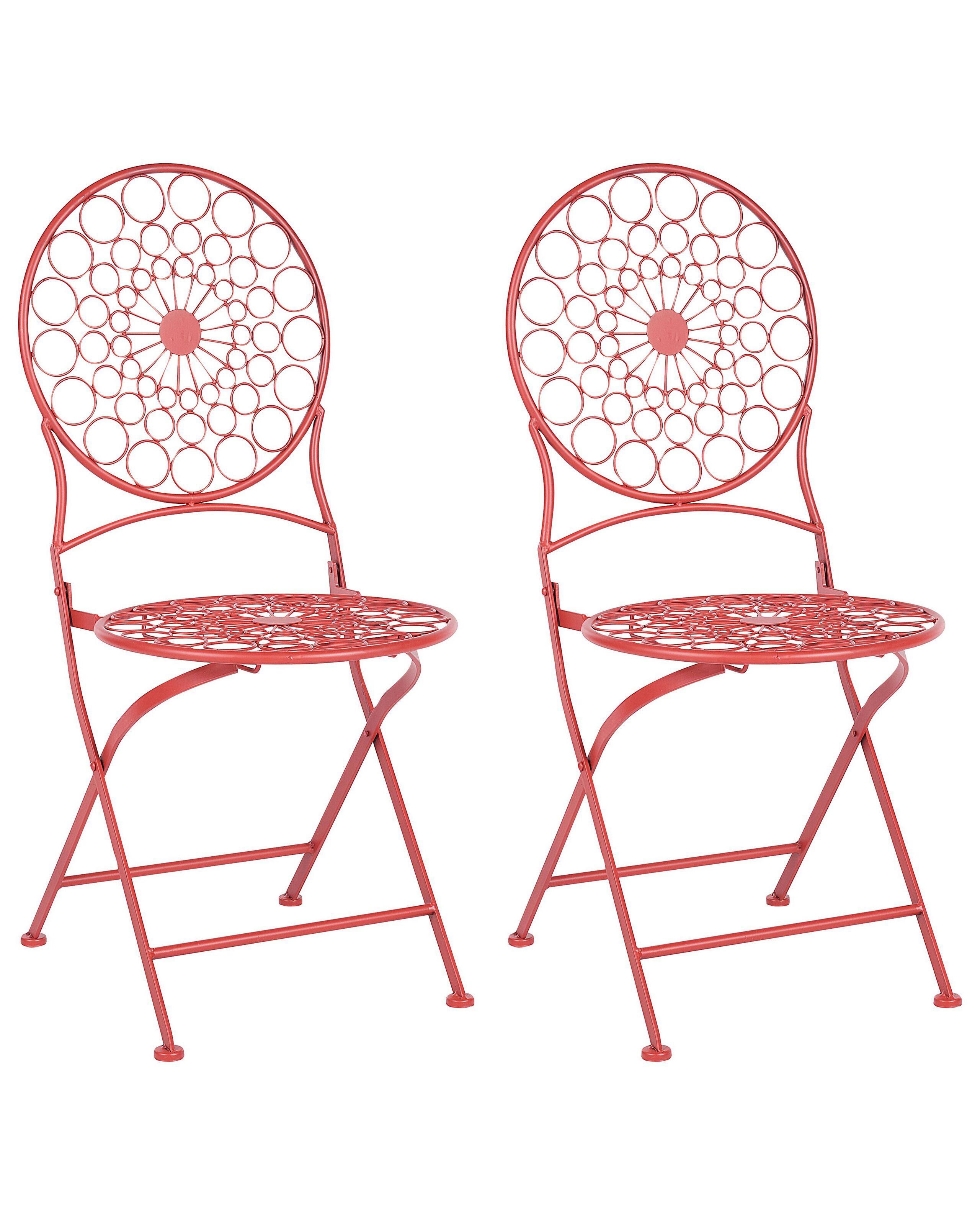 Klappbarer Bistro-Stühle im Stil der Provence. Mit diesem charmanten Outdoor-Stülen in kräftigem Rot schaffen Sie eine romantische Atmosphäre auf Ihrem Balkon oder Ihrer Terrasse. Das Design ist vom Stil der Provence inspiriert und wird mit Funktionalität vereint. Die Stühle sind zusammenklappbar und können auch in kleinen Aussenbereichen verwendet werden. Die robuste Eisenkonstruktion ist langlebig, und somit eignen sich die Stühle für eine jahrelange Nutzung.