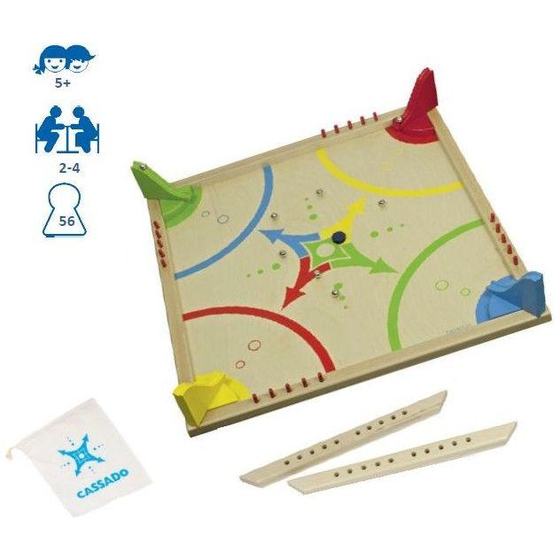 Achtung, Platz da! Eine Kugel jagt die nächste! In diesem spannenden Reaktionsspiel sind Schnelligkeit und Geschick gefragt. Die Spieler setzen metallene Kugeln ein, um eine Holzscheibe ins gegnerische Zielfeld zu bewegen. Für jeden Treffer erhält man Punkte. Ziel ist es, zuerst fünf Treffer zu erzielen und zu gewinnen.
