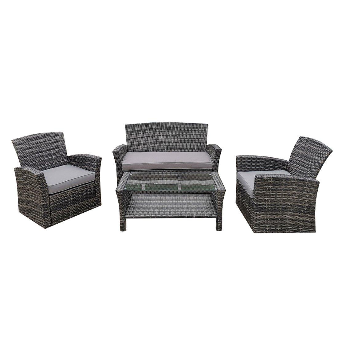 Marke: Contini, Farbe: Dunkelgrau / grau, Tisch (H x B x T in mm): 420 x 1020 x 500, Glasdicke (mm): 4, Doppelsofa (H x B x T in mm): 800 x 1320 x 690, Einzelsofa (H x B x T in mm): 800 x 730 x 690, Sitzhöhe (mm): 420, Sitzkissen inkl.: 90, Sitzkissen waschbar: Handwäsche, Wetterfest: Ja