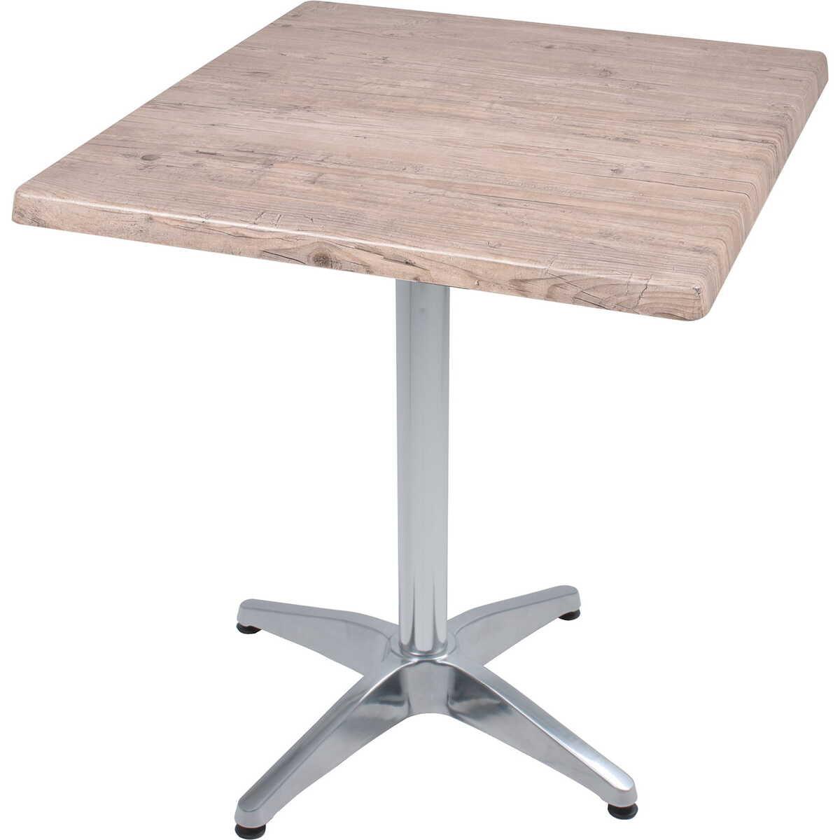 Der Bistrotisch Washington Pine Brenta - ein harmonisches Zusammenspiel aus rustikalem Charme und moderner Eleganz. Dieser Bistrotisch kombiniert eine robuste Spanplatte mit einer detailgetreuen Kunstharzbeschichtung in der Optik von Washington Pine, die dem Tisch ein authentisches Holzfinish verleiht. Das glänzende Aluminiumgestell Brenta sorgt nicht nur für Stabilität, sondern betont auch die zeitgenössische Ästhetik des Tisches. Mit seiner warmen Holzoptik und dem blanken Aluminiumgestell ist dieser Bistrotisch der ideale Begleiter für gemütliche Mahlzeiten und gesellige Zusammenkünfte - sowohl drinnen als auch draussen.