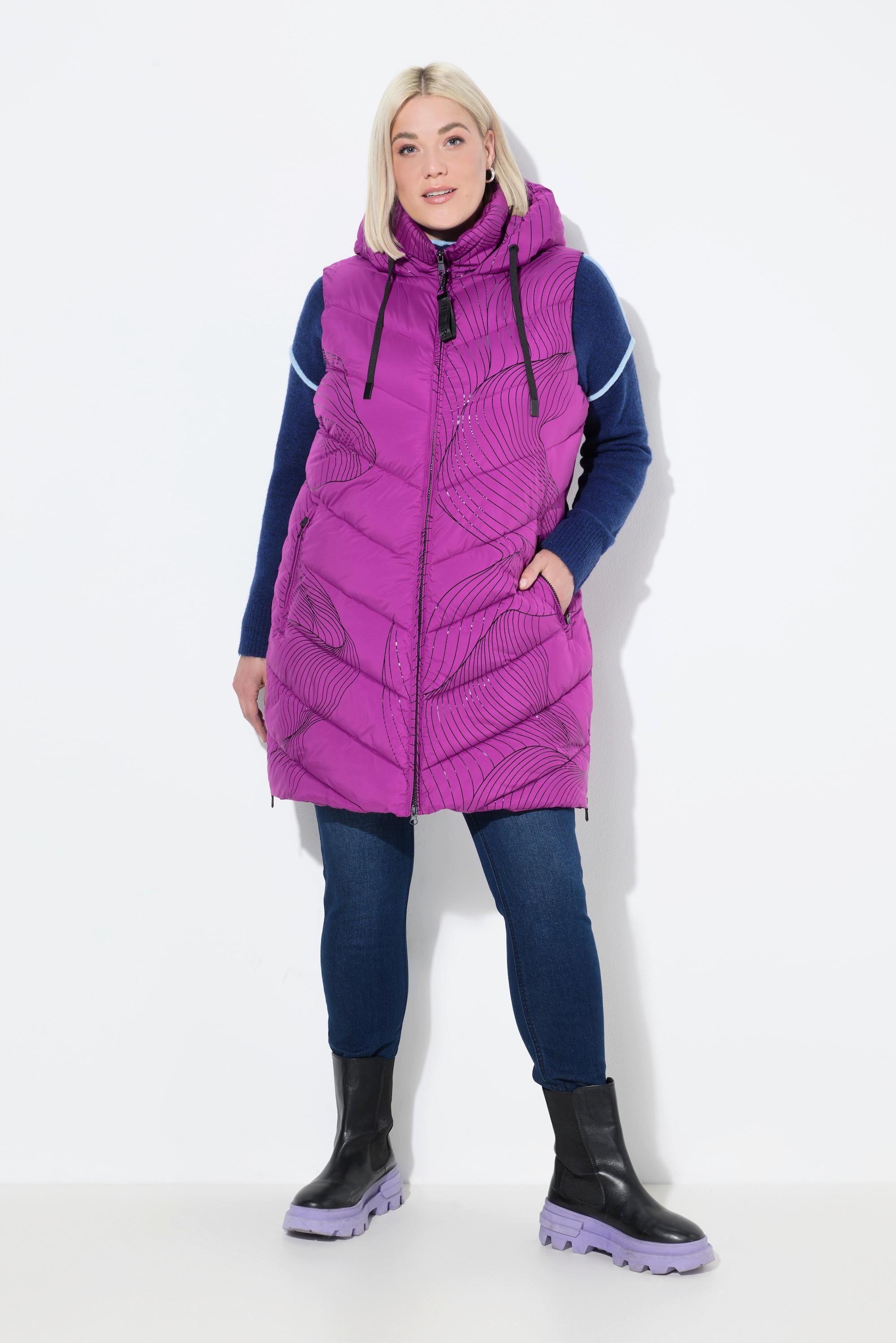 Ulla Popken Long Steppweste Kapuze Seiten Reissverschluss