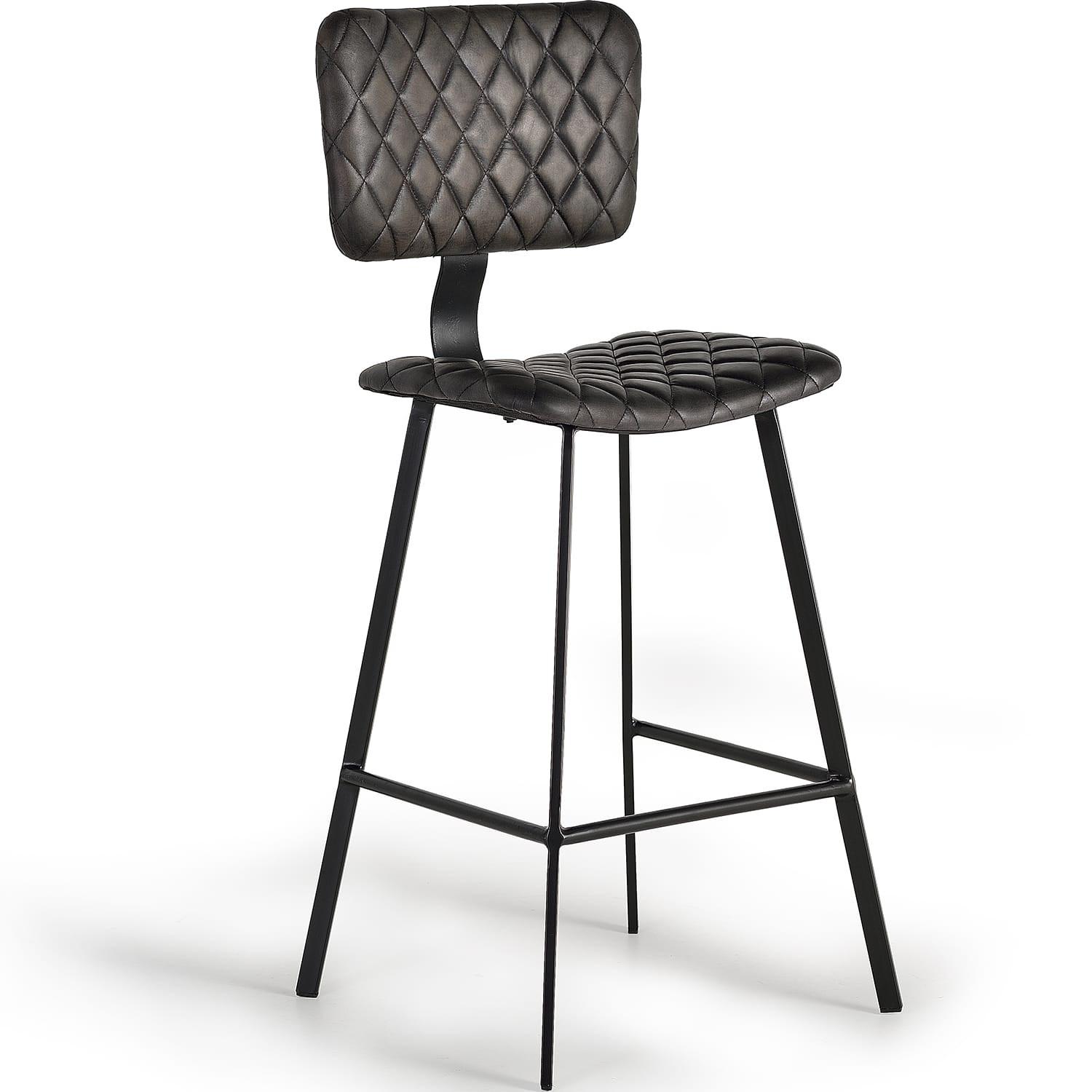 Leder- und Metallkonstruktion Elegantes dunkelgrau und schwarz Stilvolles, modernes Design Robust und langlebig Perfekt für Bar oder Küchentheke Hochwertige Verarbeitung Komfortables Sitzerlebnis Weitere Produktmasse: Sitzhöhe: 41 cm, Sitzfläche: 45x38 cm