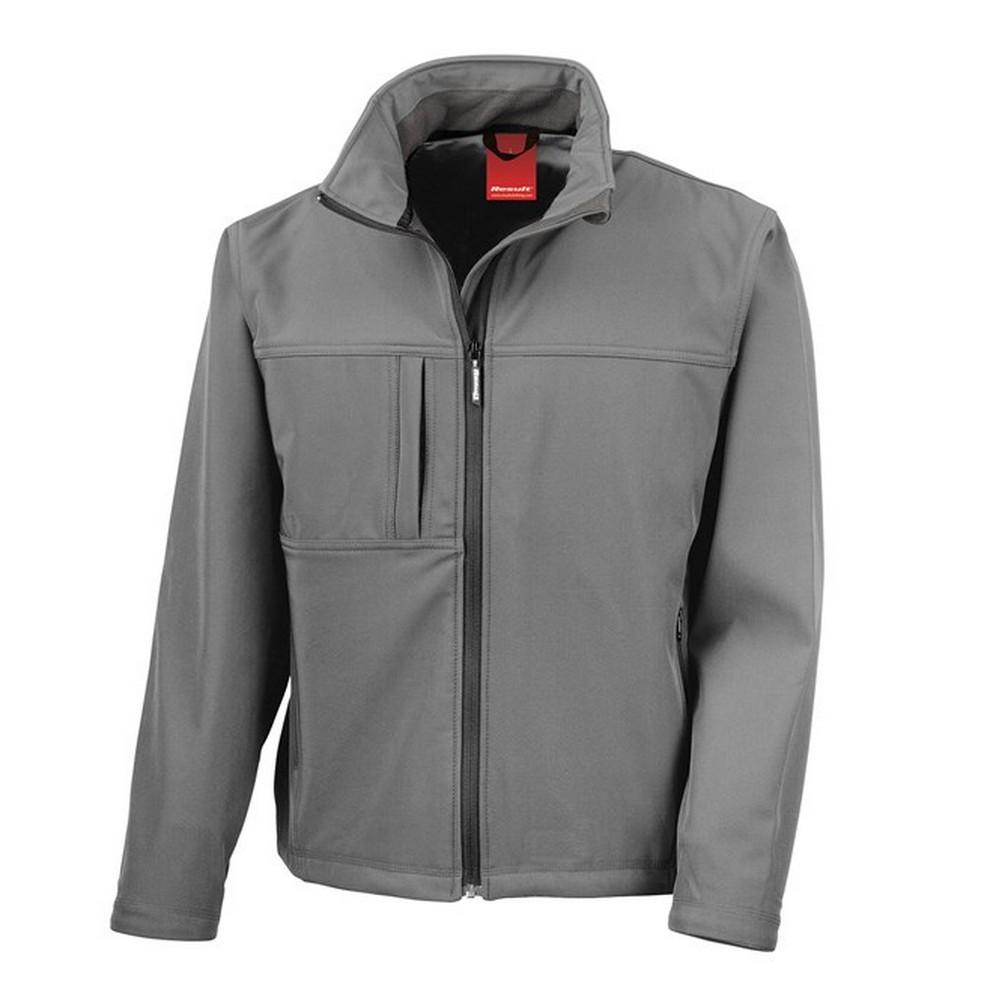 Diese klassische Softshelljacke bietet eine vielseitige und bequeme Option für Oberbekleidung. Ihr Design verfügt über einen durchgehenden Reissverschluss und einen Stehkragen, der eine klare und funktionale Silhouette für verschiedene Aktivitäten bietet.