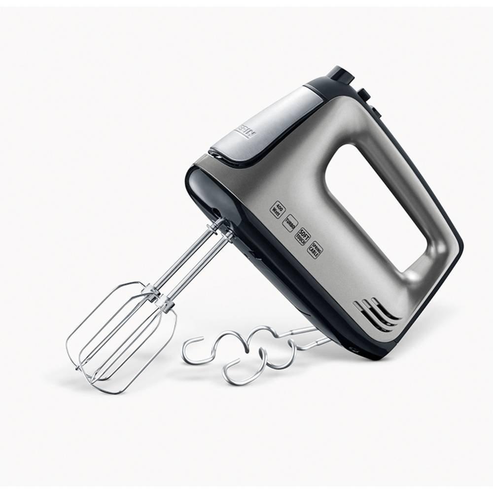 Kraftvoller 400 W Motor für perfekte Ergebnisse. Soft-Touch-Griff für eine angenehme Handhabung und komfortables Arbeiten. Metallic-lackiertes Gehäuse in moderner Farbgebung mit Edelstahl-Applikation. Flexibles Spiralkabel für freies Arbeiten in der Küche.