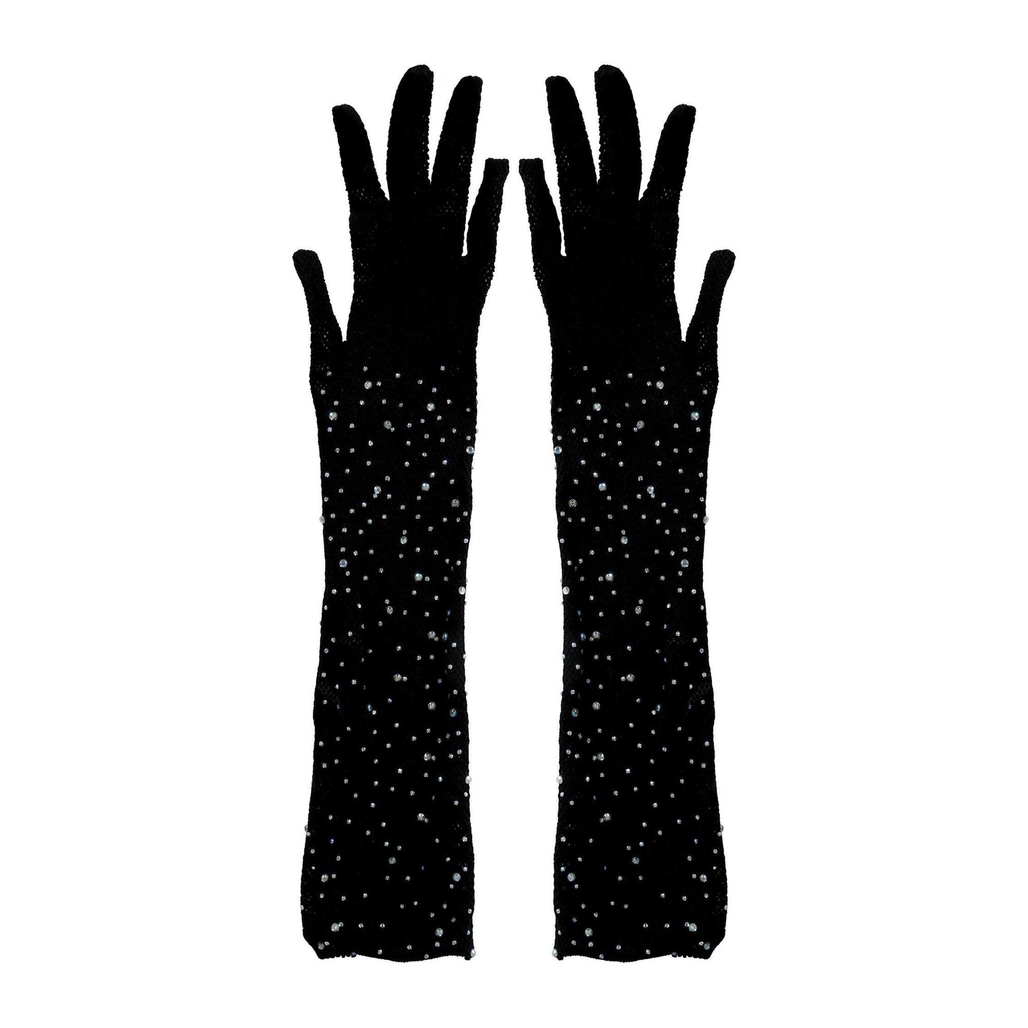 Diese eleganten Handschuhe verfügen über ein Netzdesign, das mit funkelnden Strasssteinen verziert ist und jedem Outfit einen Hauch von Glamour verleiht. Die lange Länge reicht bis zum Arm und macht sie zu einem raffinierten Accessoire für besondere Anlässe oder Abendgarderobe.