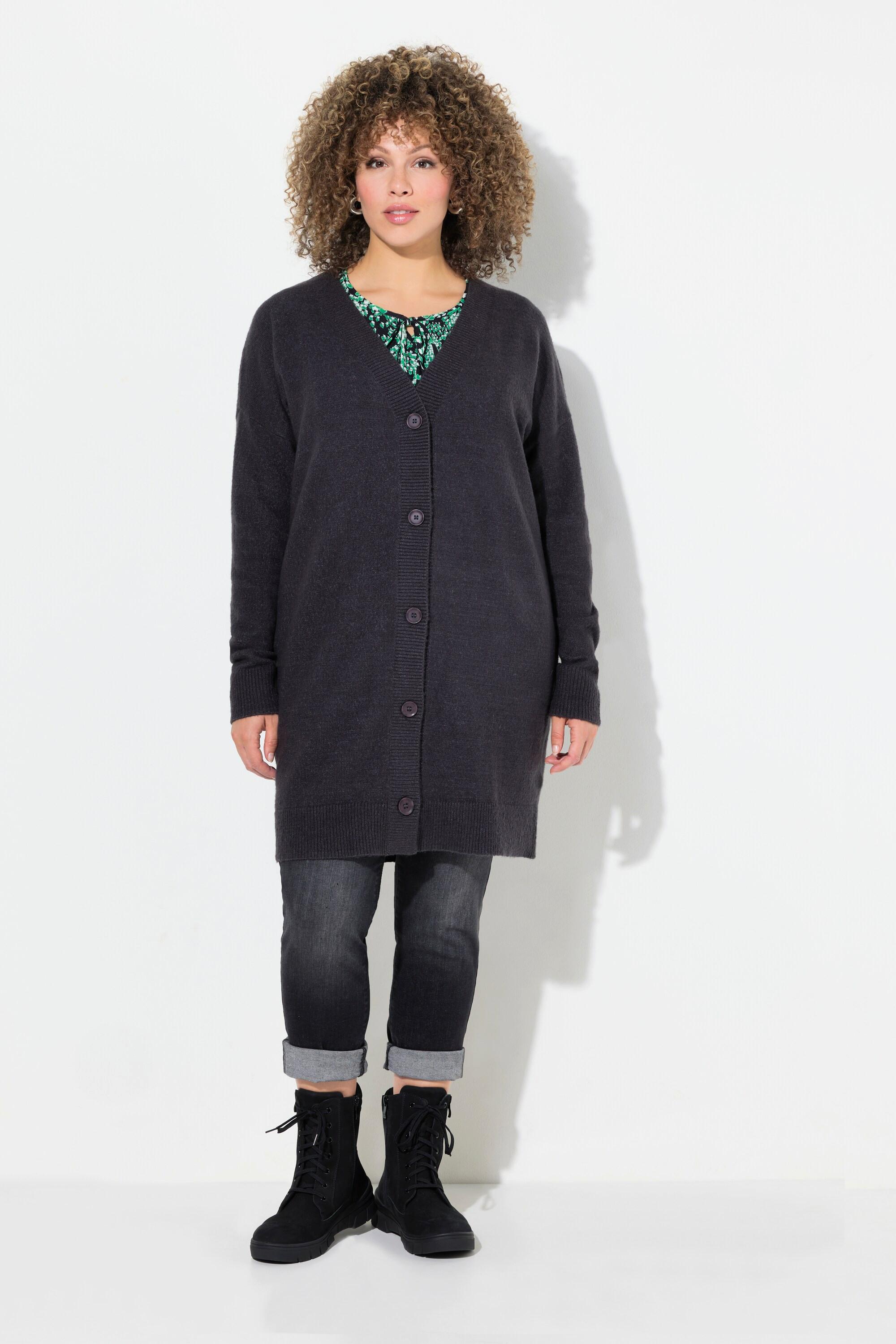 Ulla Popken Strickjacke Boxy-Schnitt V-Ausschnitt Knopfleiste