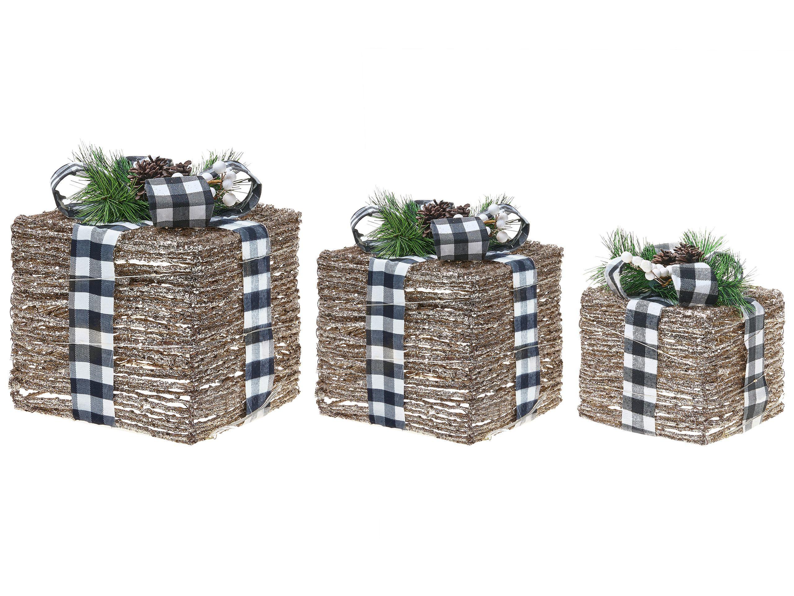 Beliani Weihnachtsdekoration 3er Set aus Rattan Klassisch ARRESKOV