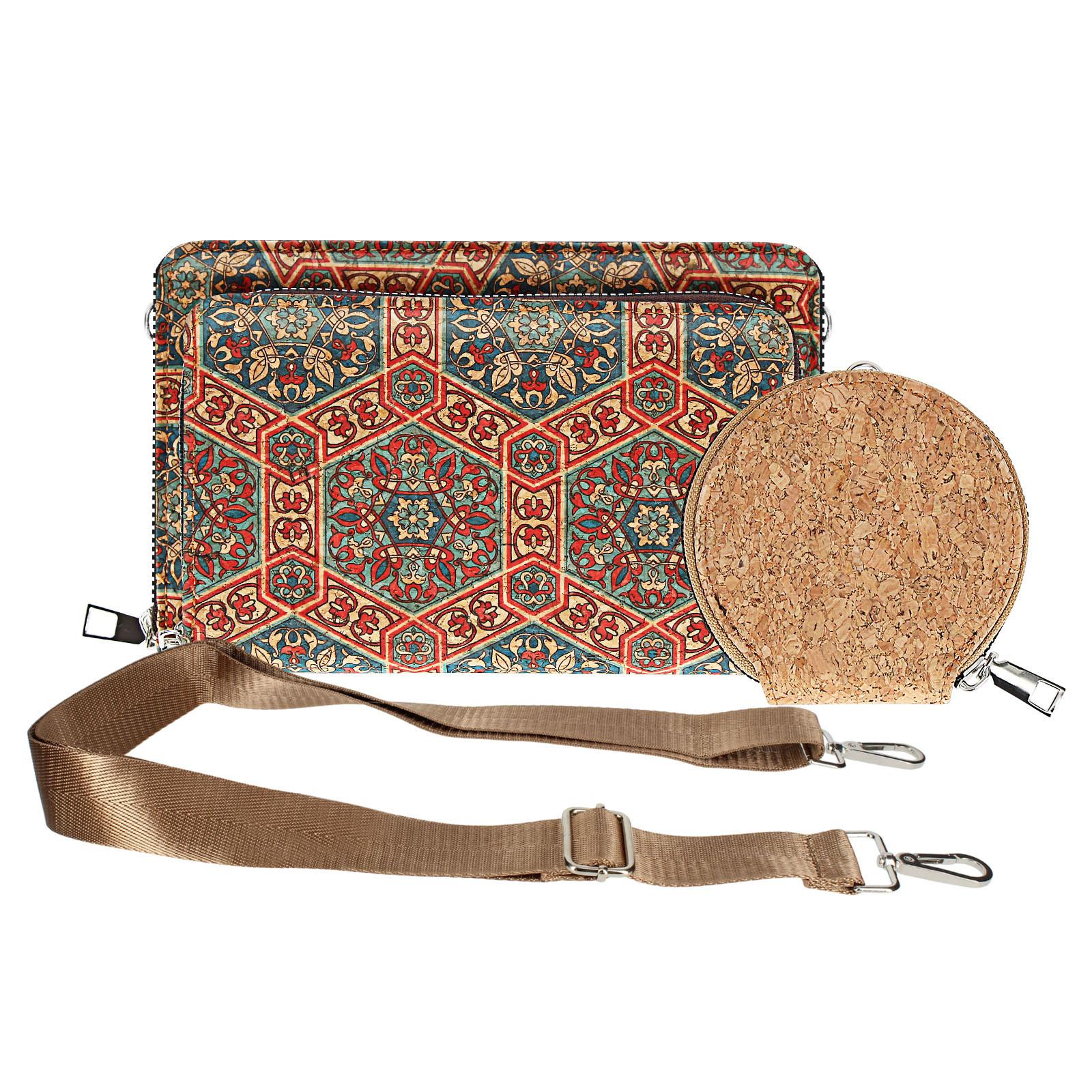 Diese Handytasche ist aus Korkstoff gefertigt und bietet ein einzigartiges und umweltfreundliches Accessoire. Sie eignet sich hervorragend für viele Freizeitaktivitäten und kann das mühsame Tragen einer grossen Handtasche ersetzen. Sie bietet genügend Stauraum für alle wichtigen Dinge, einschliesslich eines Portemonnaies.