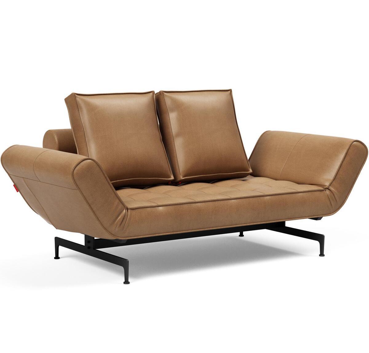 Ghia LaserDesign by Per Weiss 2007, 2016Die dänische Marke Innovation Living steht für multifunktionelle Sofas, die Ästhetik, Funktionalität und Komfort verbinden und gleichzeitig bezahlbar sind. Das Aussehen eines multifunktionalen Sofas soll genauso attraktiv sein wie ein Standard Sofa. Somit machen die Sofas überall eine gute Figur und stellen insbesondere eine attraktive Lösung dar, um mehr Raum zu schaffen, wo der Raum knapp ist. Sei es in der Ferienwohnung oder in Ihrem zu Hause für Übernachtungsgäste. Mit einem Sofa von Innovation Living gehen Sie keine Kompromisse ein. Sie kaufen ein vollwertiges Design Sofa, das sich mit wenigen Handgriffen in ein (fast) genauso vollwertiges Bett umfunktionieren lässt. Die hochwertigen Bettsofas von Innovation Living sind für den Vielgebrauch konzipiert und bieten einen entsprechend hohen Liegekomfort.Ghia ist ein modernes 2-Sitzersofa, das sich durch Herunterklappen der Armlehnen ganz einfach in ein Einzelbett umfunktionieren lässt. Die beiden Armlehnen lassen sich individuell auf 3 Höhen einstellen. So lässt sich Ghia auch wunderbar als Relaxliege nutzen. Die Taschenfederkernmatratze sorgt für einen angenehm festen Liegekomfort. Ghia ist ein toller Eyecatcher und funktional zugleich. Mit den mattschwarzen Metallbeinen wirkt das Modell sehr modern und puristisch. Sofagrösse: 178 x 93 cmBettgrösse: 80 x 210 cmKomfort: Federkern, festGestell/Fuss: Stahl, mattschwarzMaximale Belastbarkeit: 220 kgAbstand zwischen Boden und Gestell: 10 cmBesuchen Sie hier den Innovation Living 3D-Showroom.