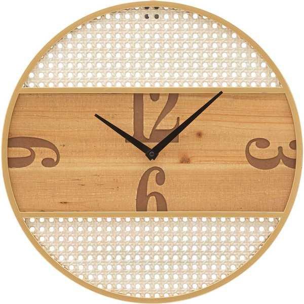 Runde Wanduhr mit einem unverwechselbaren Design, das an Wiener Stroh erinnert. Die schlichten, aber ansprechenden Linien verleihen jeder Wand einen besonderen Touch von Raffinesse.