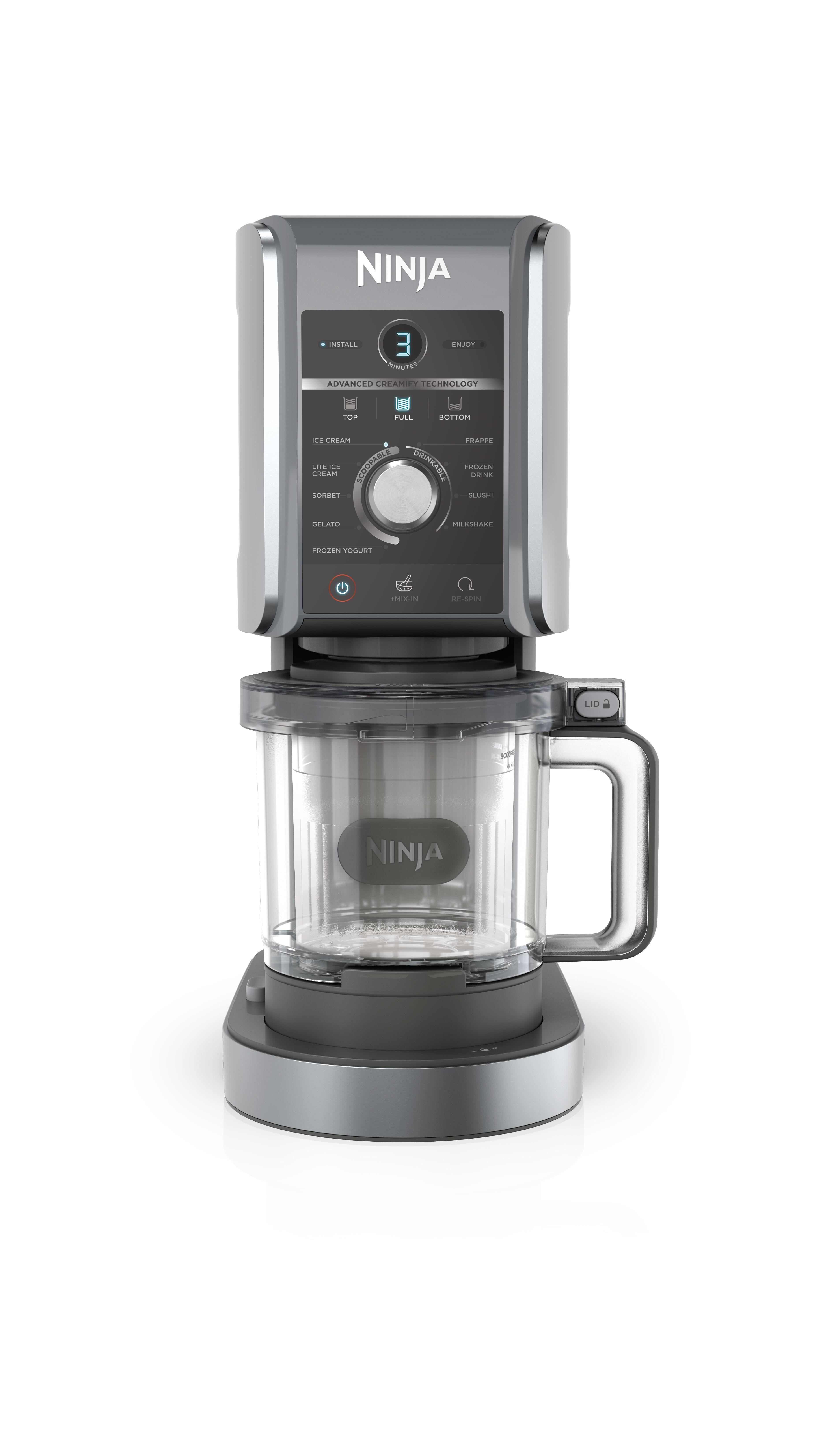 Fortschrittliche CREAMify-Technologie Die Dual-Drive-Motoren üben Druck nach unten aus und drehen den professionellen Creamerizer-Paddle, der Eispartikel fein hobelt und in köstliche Leckereien wie Slushies, gefrorene Getränke, Frappes und mehr verwandelt.