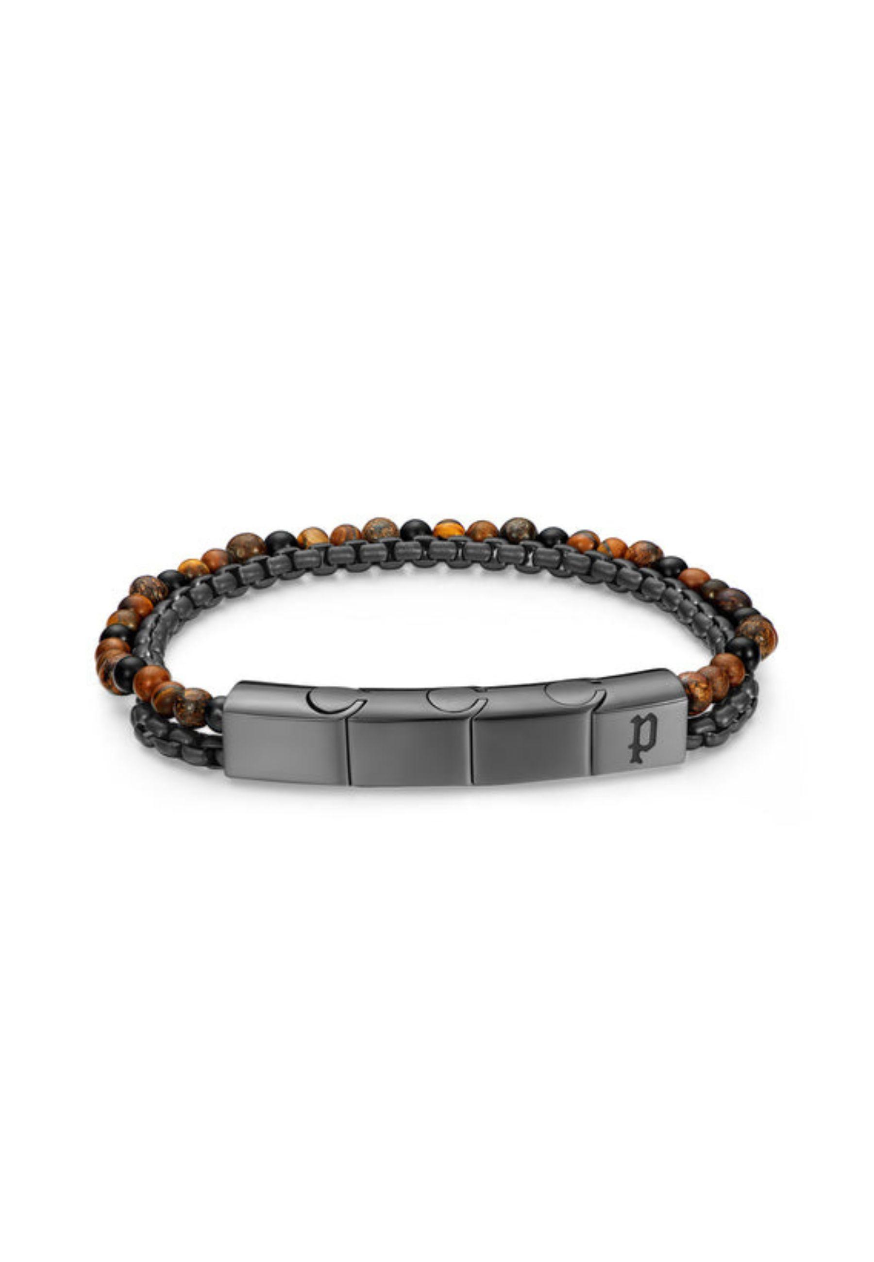 Dieses zweireihige Armband von POLICE hat doppelte Wirkung! Mit Tigeraugen-Perlen, die kühn gegen eine robuste IP-Gun-Box-Kette kontrastieren, ist dieses Design für diejenigen gedacht, die Accessoires verlangen, die ihren furchtlosen Geist und einzigartigen Geschmack widerspiegeln. Das Armband ist in ONE SIZE erhältlich und passt den meisten Handgelenken.