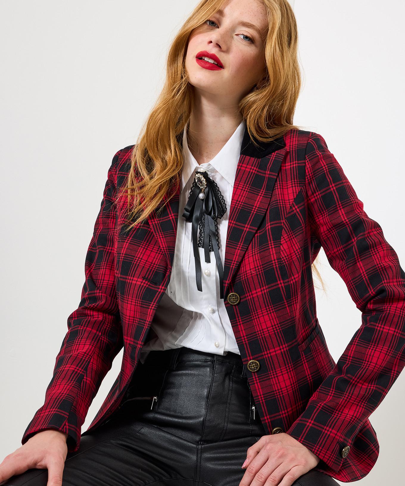 Dieser Blazer präsentiert sich mit einem lebhaften Karomuster, das einen auffälligen und modischen Look bietet. Er ist in einer klassischen Silhouette gestaltet und somit eine vielseitige Ergänzung für verschiedene Outfits.