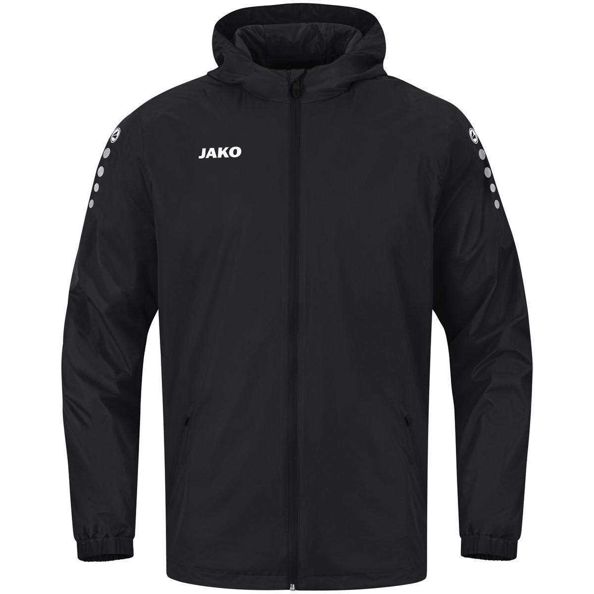 Die Jako Team 2.0 Wasserdichte Kinderjacke besteht zu 100% aus Polyester. Ein hochfunktionelles, wasserabweisendes Obermaterial mit PU-Beschichtung hält bei allen Wetterbedingungen trocken. Die integrierte Kapuze, der verlängerte Rücken und die elastischen Bündchen schützen vor Wind und Regen. Wertsachen können in den integrierten Seitentaschen mit Reissverschluss verstaut werden.