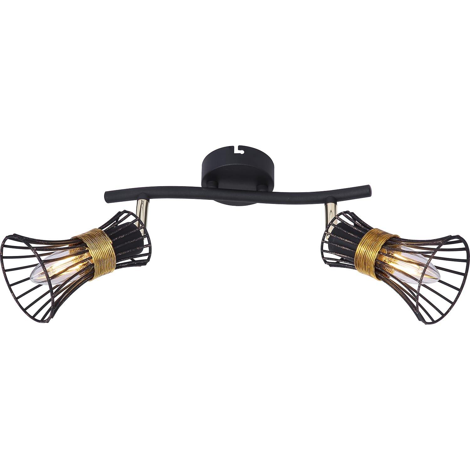 Strahler Metall schwarz goldfarben, Metallstäbe schwarz goldfarben, LxBxH:290x90x220, exkl. 2xE14 40W 230V