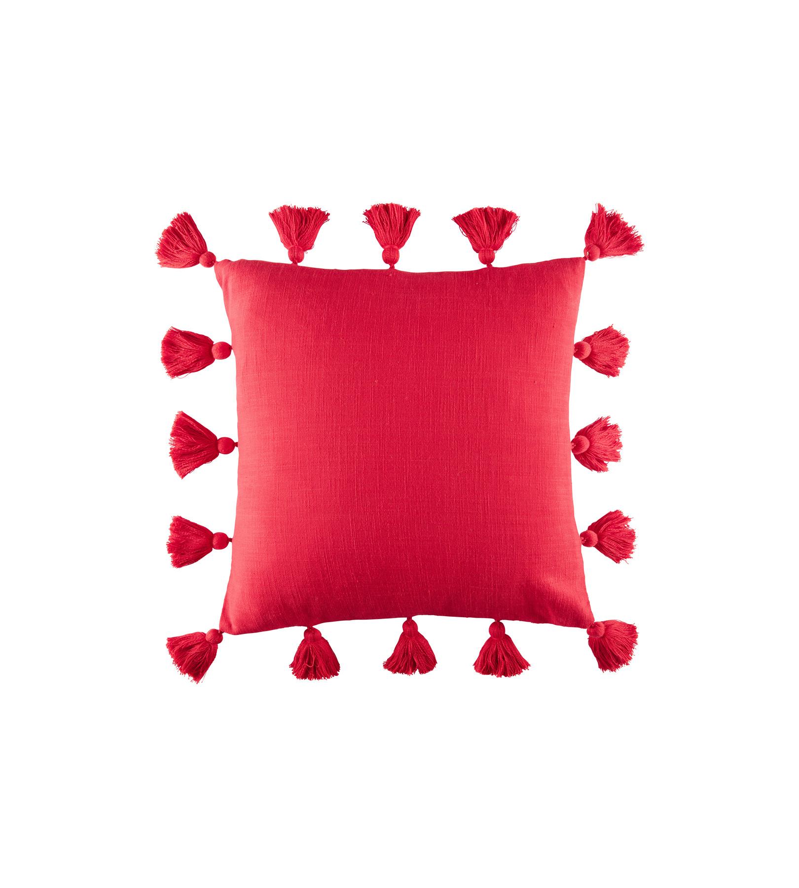 Der Emilio Kissenbezug verleiht jedem Wohnraum eine verspielte und dekorative Note. Dieser Bezug präsentiert sich in einem unifarbenen Design mit charmanten Quasten an allen vier Seiten, die einen stilvollen und einladenden Akzent für Sofas, Stühle oder Betten setzen.