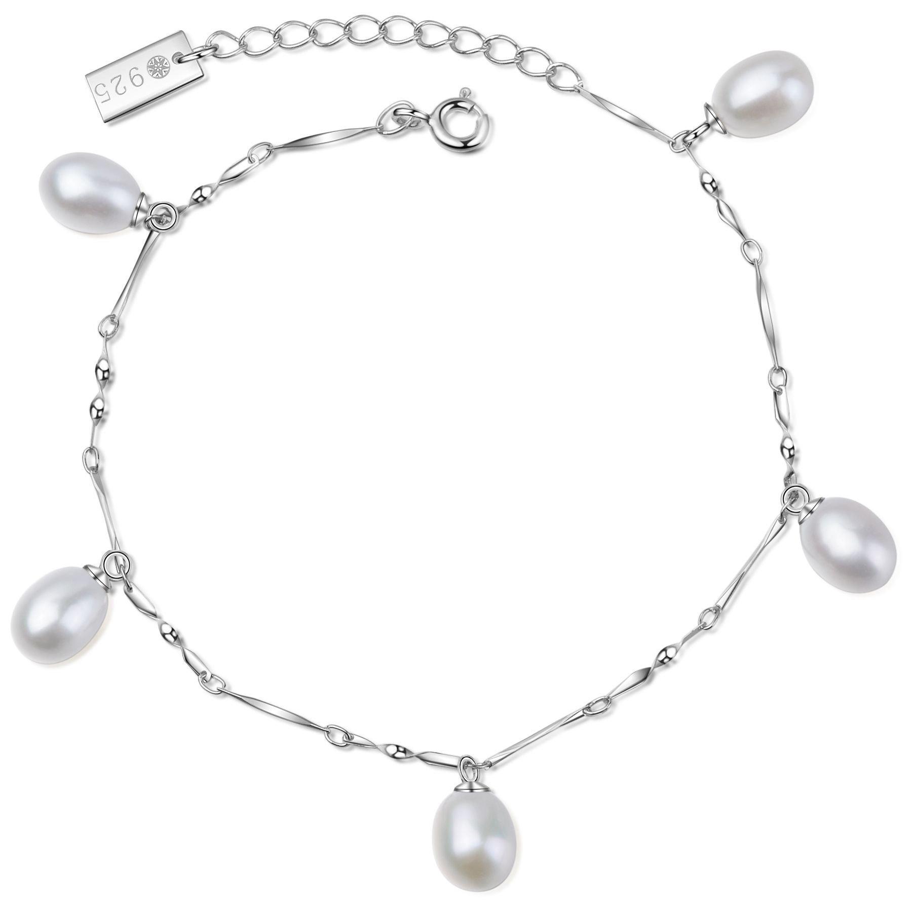 - Sterling Silber Armband mit 5 Perlen